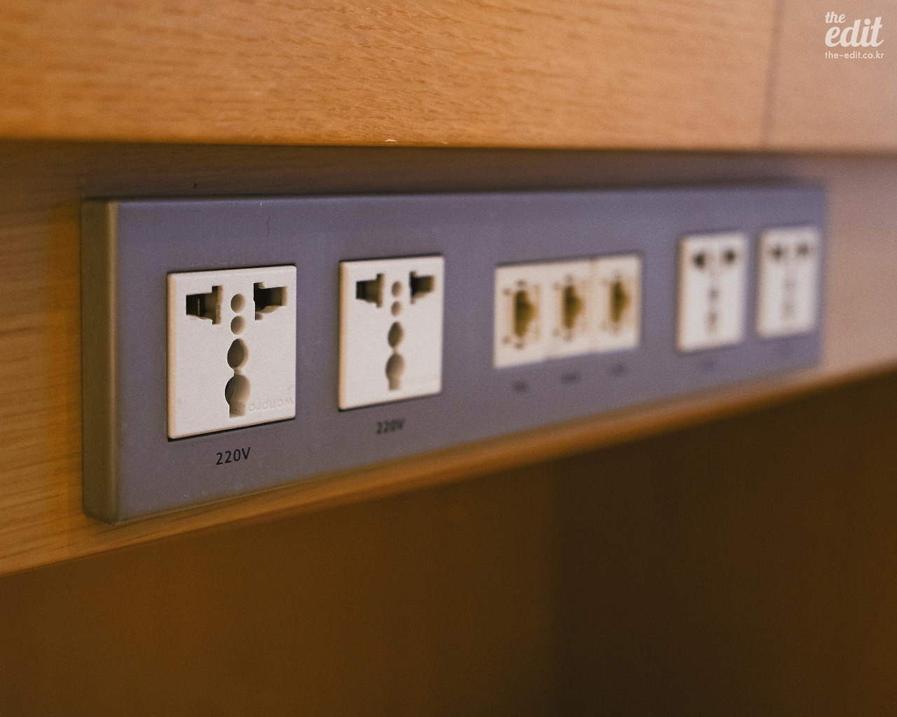 오래된 호텔의 단점이 두드러지는 때가 바로 디지털 기기의 사용에 대한 배려가 부족한 순간이다. 구식 멀티 콘센트는 위치도 썩 좋지 않다. 사진 속의 장소를 빼면 편안하게 충전기를 연결할 수 있는 장소가 전무했다. 요즘은 비즈니스호텔에서도 갖추고 있는 TV 모니터의 HDMI 케이블 연결도 지원하지 않더라.