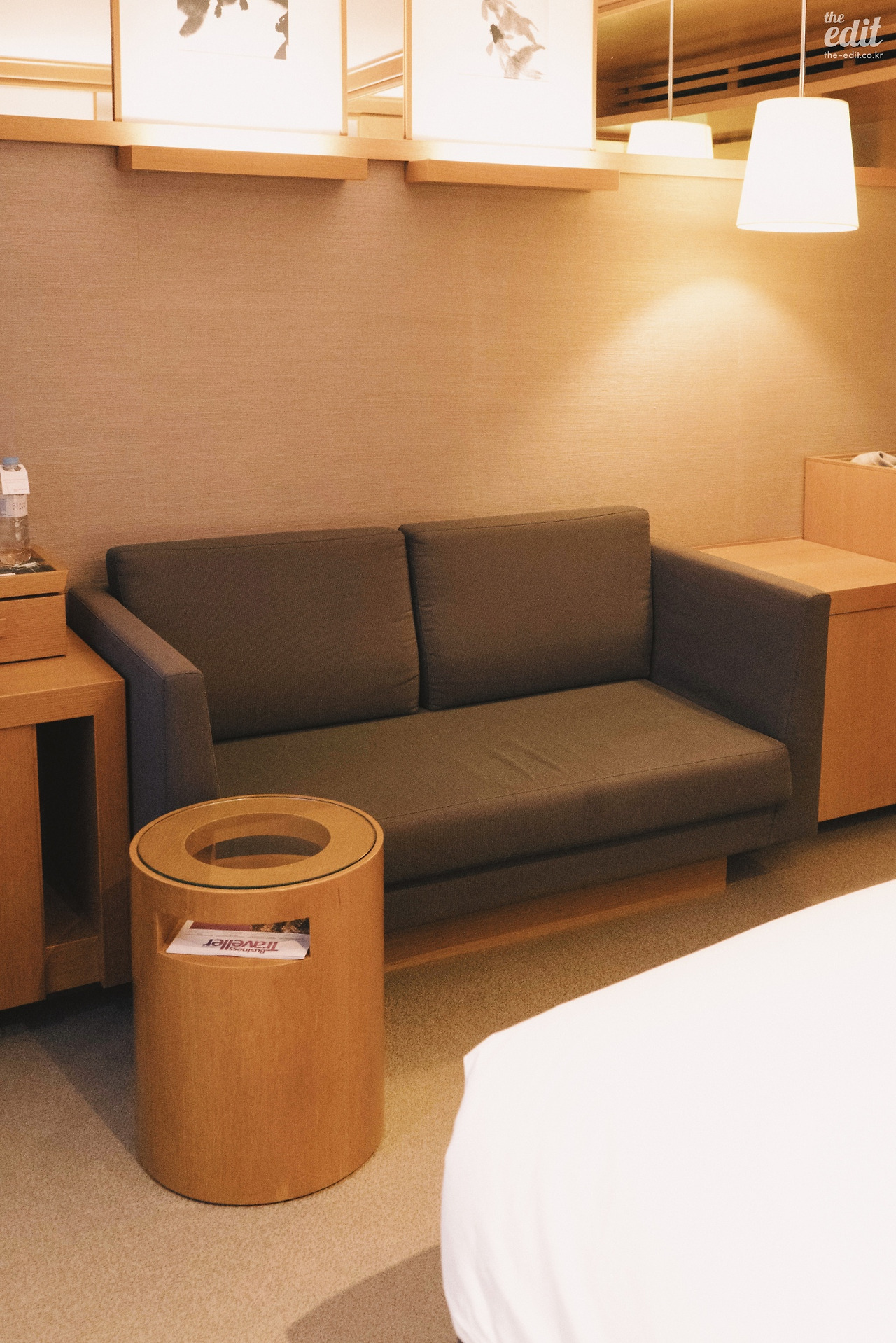 객실 인테리어는 크게 감동을 받을 만한 요소는 없었다. 잘 관리되어 있긴 했지만, 신생 호텔에 비해 룸컨디션이 떨어지는 것도 어쩔 수 없더라. 객실 크기도 넓은 편은 아니다. 그냥 불편함이 없을 정도였다. 소파 옆의 원형 테이블은 활용도도 떨어지고, 통행을 방해해서 아쉬웠다.