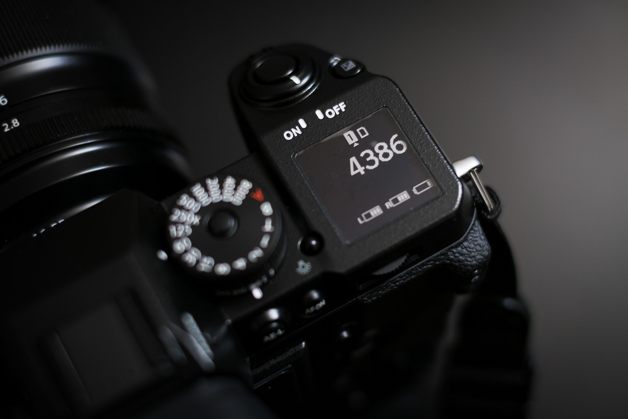 아까 말하는걸 잊었는데 상단 LCD는 전원을 꺼도 정보가 계속 표시된다. 위의 사진은 전원이 켜져있을때라 셔터스피드, 조리개, 화이트밸런스, 필름시뮬레이션등 필요한 정보가 나타나고, 전원을 끄면 끄기전 상태가 사진모드냐 동영상 모드냐에 따라 남은 장수나 남은 영상 시간수가 표시된다.