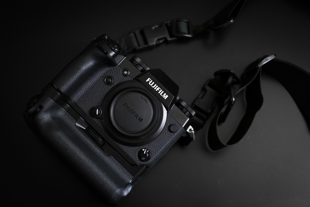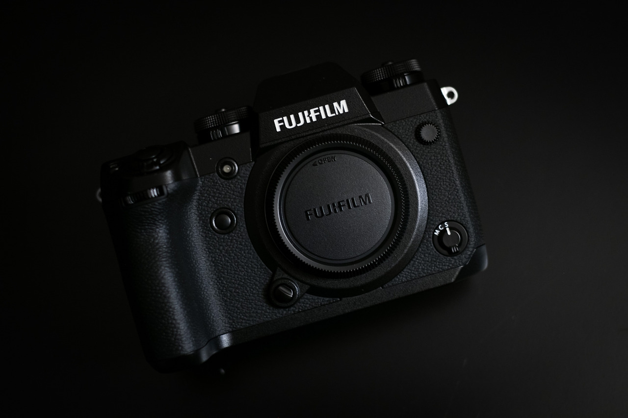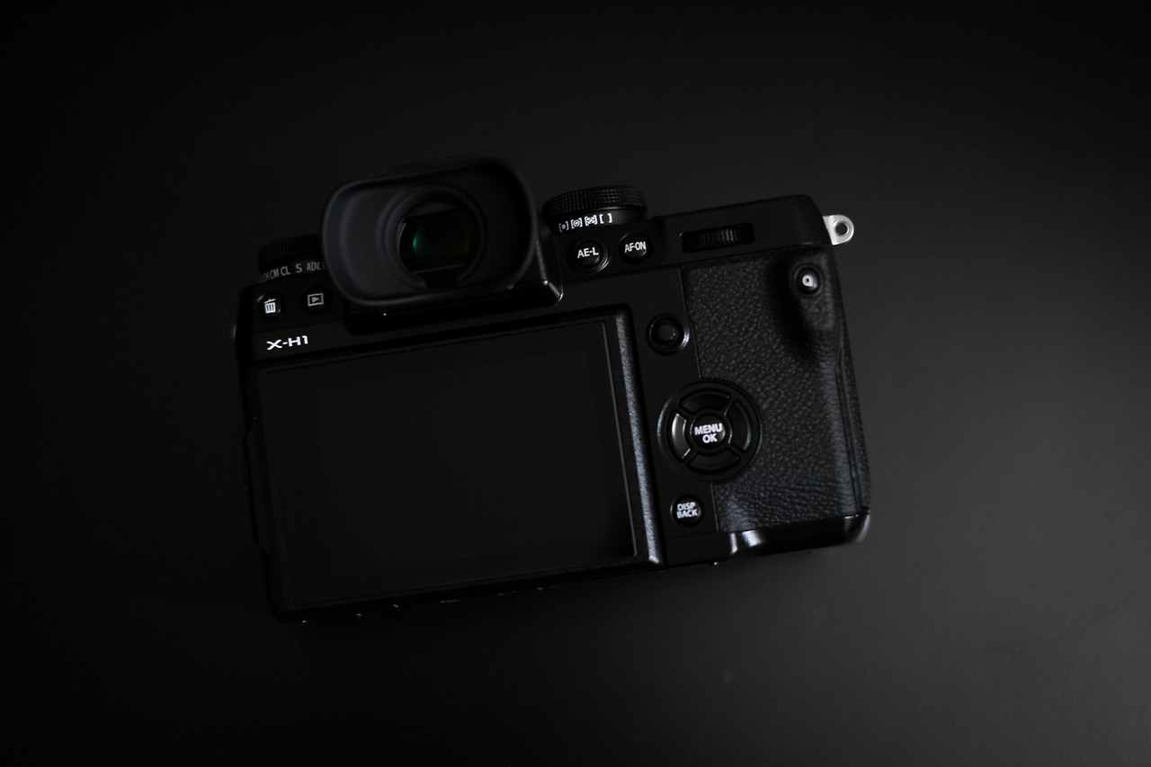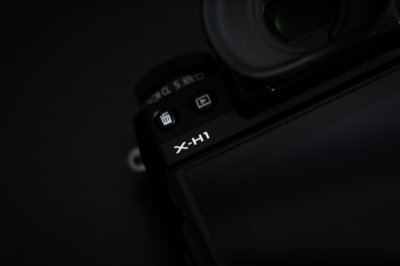 후면으로 온 X-H1로고. 개인적으론 이 위치가 더 좋다. 앞에 두면 내가 무슨 카메라 쓰는지 다 광고 하고 있는 듯해서 그렇다. 포토그래퍼들 중에는 전면에 나와있는 로고나 모델명들을 마스킹 테이프로 가리고 쓰는 경우들이 있는데 인물사진을 찍을 경우 모델의 시선이 돌아가는 걸 방지하기 위해서기도 하다. 아마 프로페셔널 지향 카메라이기 때문에 그런 부분까지 신경 쓴 게 아닐까 싶다.