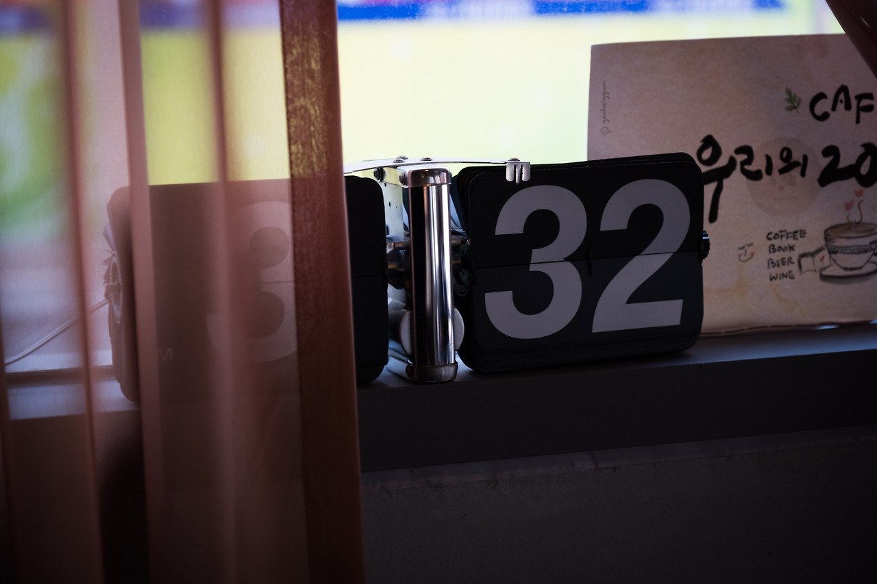 창가에 놓여있는 플립클락. 계산대 바로 앞이라 찍기 부끄러웠지만 찍었다.