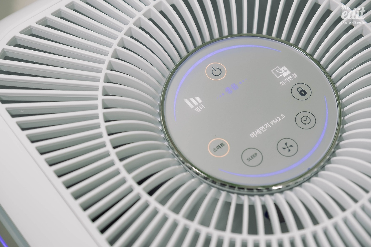 제법 강력한 풍량을 쏘아대는 원리도 알아봤다. 일반적인 공기청정기는 팬모터가 1개인데, 이 제품은 무려 2개다. 외부 공기를 걸러 더 강력하게 환기해줄 수 있도록 하는 환기청정 팬모터가 별도로 내장되어 있다고 한다. 이 덕분에 오염된 실내 공기가 산뜻한 공기로 물갈이 되는데 30분 정도면 충분하다. 심지어 이건 디에디트 사무실 크기보다 더 큰 30평대 아파트 거실을 기준으로 한 결과라고.