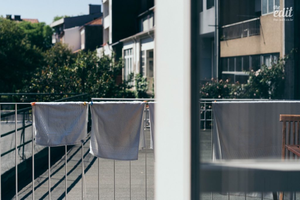 한쪽 구석에 서울에서 만들어온 포스터를 붙이고 시장에서 사온 바질과 로즈마리를 키운다. 내가 뭘 잘못했는지 바질은 벌써 죽었다. 해가 잘드는 곳에는 빨래를 넌다. 낮동안 널어둔 빨래에서는 바스락 거리는 햇살의 냄새가 난다. 한국의 해도 따갑지만 유럽의 해는 차원이 다르다. 유럽의 오래된 집들에 해 가림막이 있는 이유다. 우리집의 내벽과 창문사이에는 30cm 정도의 간격이 있어 직사광선이 들어오는 곳이 거의 없다. 이 구조와 높은 층고 덕분에 한낮에도 집안은 서늘하다.