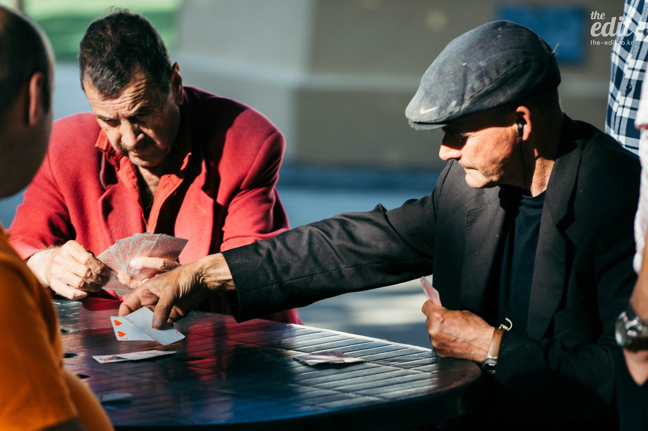 가까스로 얻은 정보는 하나였다. 이 카드 게임은 돈 내기가 아니라는 것. 공원 여기저기에 흩어진 테이블 마다 한 명이 승패를 노트에 받아 적고 있었다. 종로 출근 시절 매일 지나치던 탑골 공원이 떠오른다. 노인들이 한 곳으로 모이는데는 이유랄 것이 없었다. 일어나면 그곳에 모여 바둑을 두고 장기를 두고 훈수를 두고 하루를 보낸다. 거기가 그들의 사회였다.