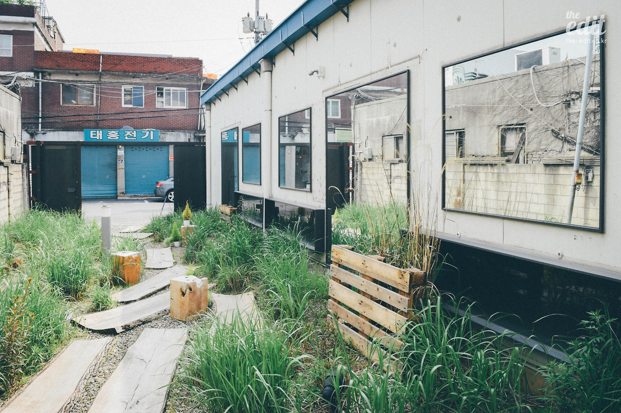 안전가옥은 여러 공장이 들어서 있는 성수동에 있다. 그래서 스마트폰 지도를 켜고 안전가옥을 찾으러 가는 길에 ‘정말 이 길이 맞는 걸까?’도저히 카페와 비슷한 공간이 나올 만한 분위기가 아니었기 때문에. 인내심을 갖고 공장과 공장을 지나 코너와 코너를 꺾고 나서야 주변과 어울리지 않는 생경한 이미지의 입구가 보였다.