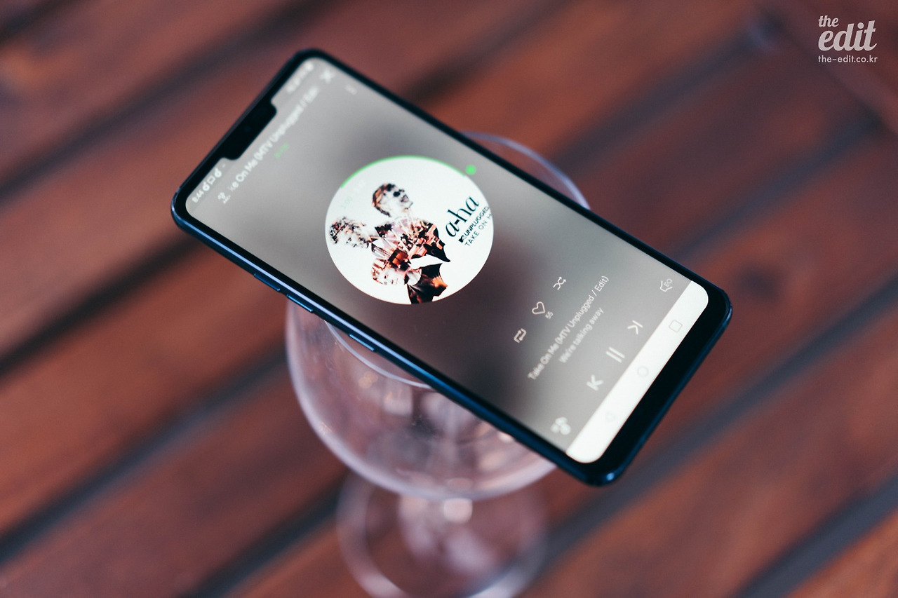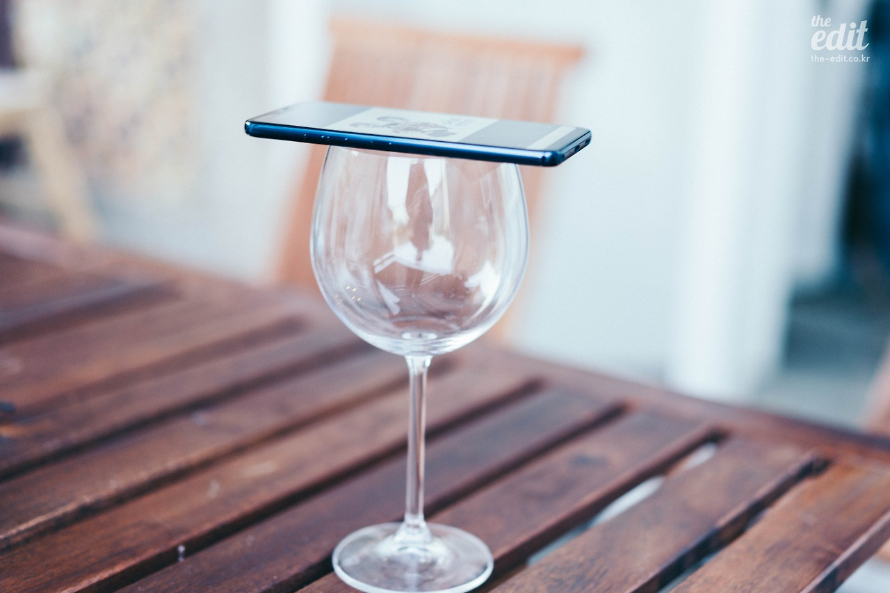사용 방법도 쉽다. G7 ThinQ가 담겨있던 스마트폰 박스 위에 폰을 올려두고 음악을 재생하면 훨씬 생생한 사운드를 느낄 수 있다. 박스 안에서 소리가 울리며 출력을 높이는 원리다. 이 기술을 이용해서 저음역대 음량을 최대 6데시벨 정도 높일 수 있다고. 그냥 테이블 위에 올려놔도 울림이 커진다. 나는 재밌어서 와인 잔에 올려두고도 테스트해봤다. 효과가 있더라. 이 부분은 영상 리뷰에서 확인하시는 게 가장 와닿을 것 같다.