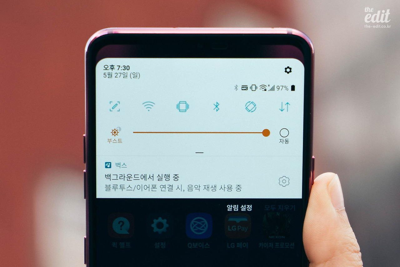 이럴 때 부스트 모드를 쓰면 눈이 탁 트이는 것 같다. G7 ThinQ 디스플레이의 기본 최대 밝기는 700 니트 정도다. 보통 스마트폰 화면 밝기가 500~600 니트 정도임을 감안하면 이 역시 밝은 편이다. 하지만 부스트 모드를 활용하면, 최대 3분 동안 1,000 니트의 휘도를 구현할 수 있다.
