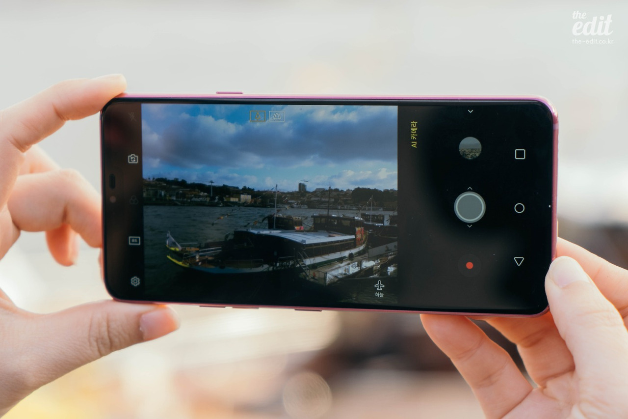 별도로 보정을 하진 않았다. AI 카메라로 촬영했기 때문에, 풍경 모드나 하늘, 도시 모드로 인식해 어울리는 톤을 자동으로 잡아준 결과물이다. AI 카메라의 인식 속도가 V30에서보다 훨씬 빨라졌으며, 촬영 모드도 19가지로 더 다양해졌다.