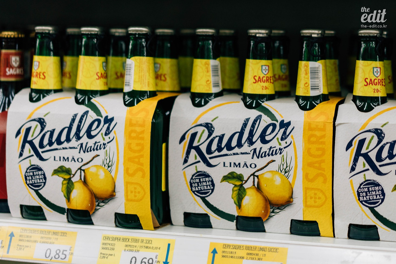가격은 한 병에 0.85유로. 6개 들이 한 팩을 사도 2.5유로 정도다. 이렇게 착한 가격이니 목이 마르면 콜라보다 레몬 맥주를 찾게 된다. 호불호 없이 누구나 즐겁게 마실 수 있는 맥주니까 반드시 사서 마셔보자. 포르투갈 어로 레몬을 limão(리망)이라고 하는데 맥주에 이게 쓰여있으면 레몬 맥주라고 생각하면 쉽다.