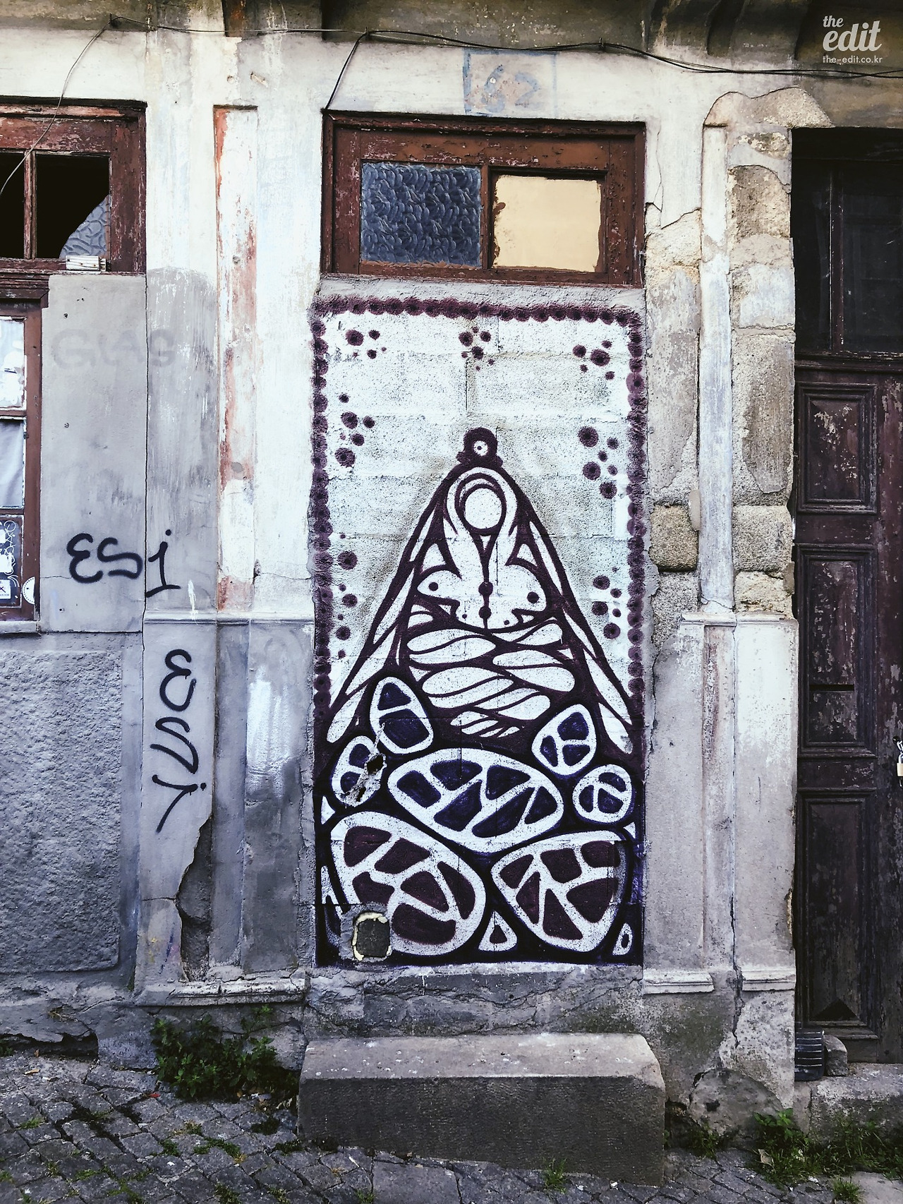 이름은 Hazul. 실제 본명이자, 포르투갈어로 파랑색을 뜻하는 Azul과 발음이 비슷하다. 정식 미술 교육을 받은 적이 없다지만, 망설이지 않고 뻗어가는 터키와 독특한 스타일 때문에 많은 사람들이 사랑하는 예술가다. 그의 작품의 특징은 얼굴이 없는 여성(마리아)상 그리고 그의 이름처럼 파랑색을 자주 쓴다는 것. 꼭 기억해 두었다가 어느 골목 그의 그림과 마주치면 오랜 친구를 만난 것 처럼 반가운 마음이 들 거다.