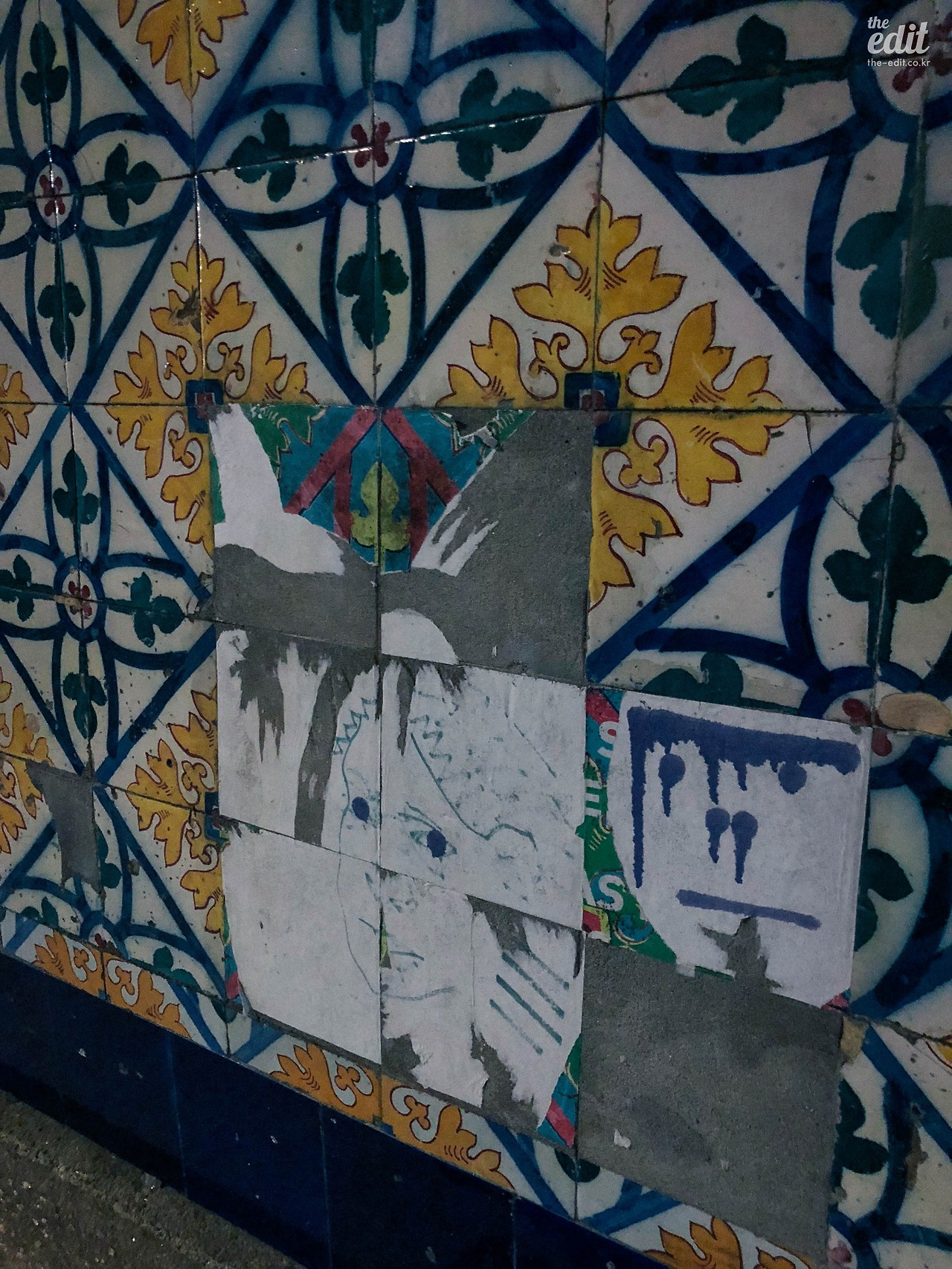 그런데 며칠이 지나고 길이 눈에 익기 시작하면서 귀여운 디테일들이 눈에 밟힌다. 멀리서 봤을 땐 그냥 타일처럼 보였지만 자세히 보면 타일 위에 하나하나 그림을 그려두기도 하고, 깨진 타일을 그냥 지나치지 못해 무언가를 그려넣은 손길도 있다. 집요하고 짓궂다.