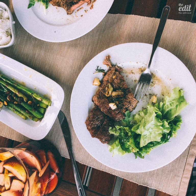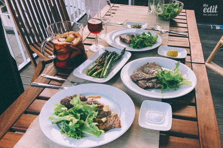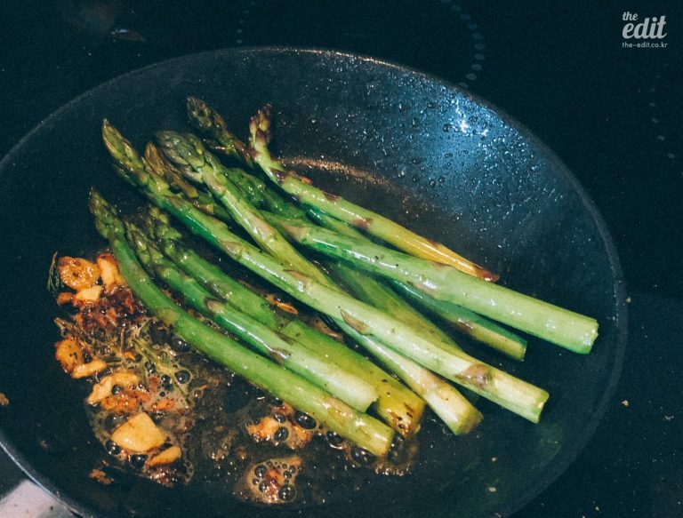 스테이크를 굽고 남은 기름에 아스파라거스를 구우면 천국의 맛이 난다. 이땐 콧노래가 절로 나온다. 왜냐고? 밥 먹을 시간이 눈앞에 다가왔으니까.