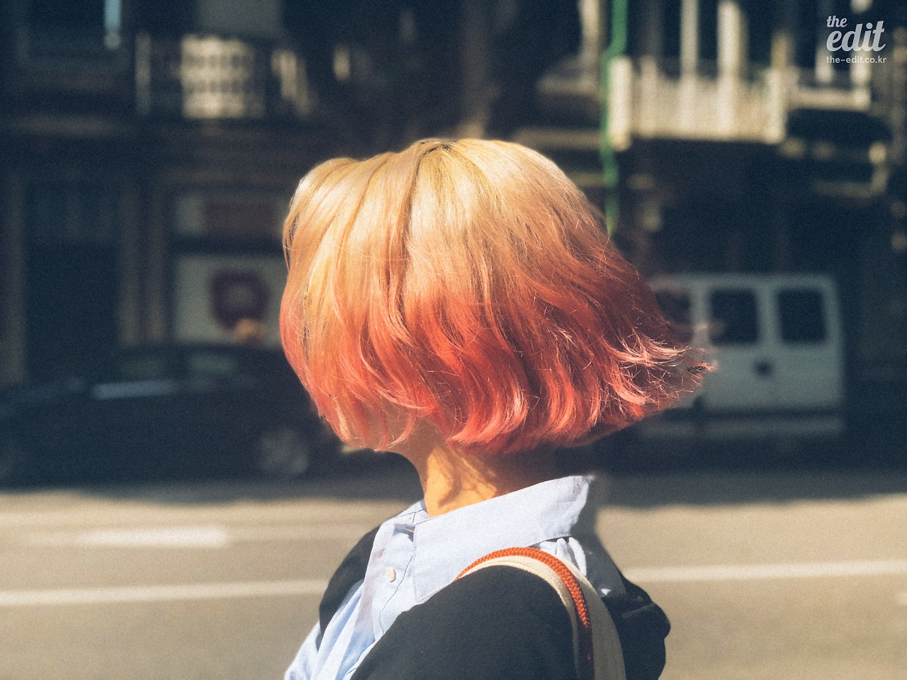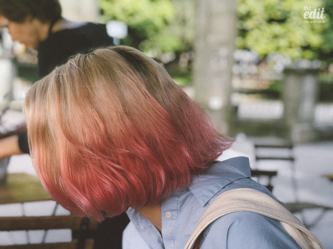 에디터M의 탈색 머리는 정말이지 포토제닉하다. 사진 속의 헤어는 내가 직접 염색해준 것. 근사한 핑크 투톤이었다. 내가 보정하면서 빨간머리로 만들어버렸네.
