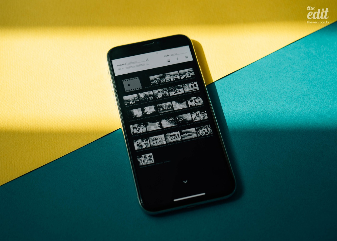 사실 앱 UI가 아주 세련된 편은 아니에요. 좋게 말하면 복고풍이고, 나쁘게 말하면 살짝 촌스러워요. 근데 전 이 느낌이 좋더라구요. 촬영한 사진은 좌측에 네거티브 필름으로 기록이 남아요. 아날로그의 경험을 스마트폰 화면 안에 녹여낸 솜씨가 제법이에요.