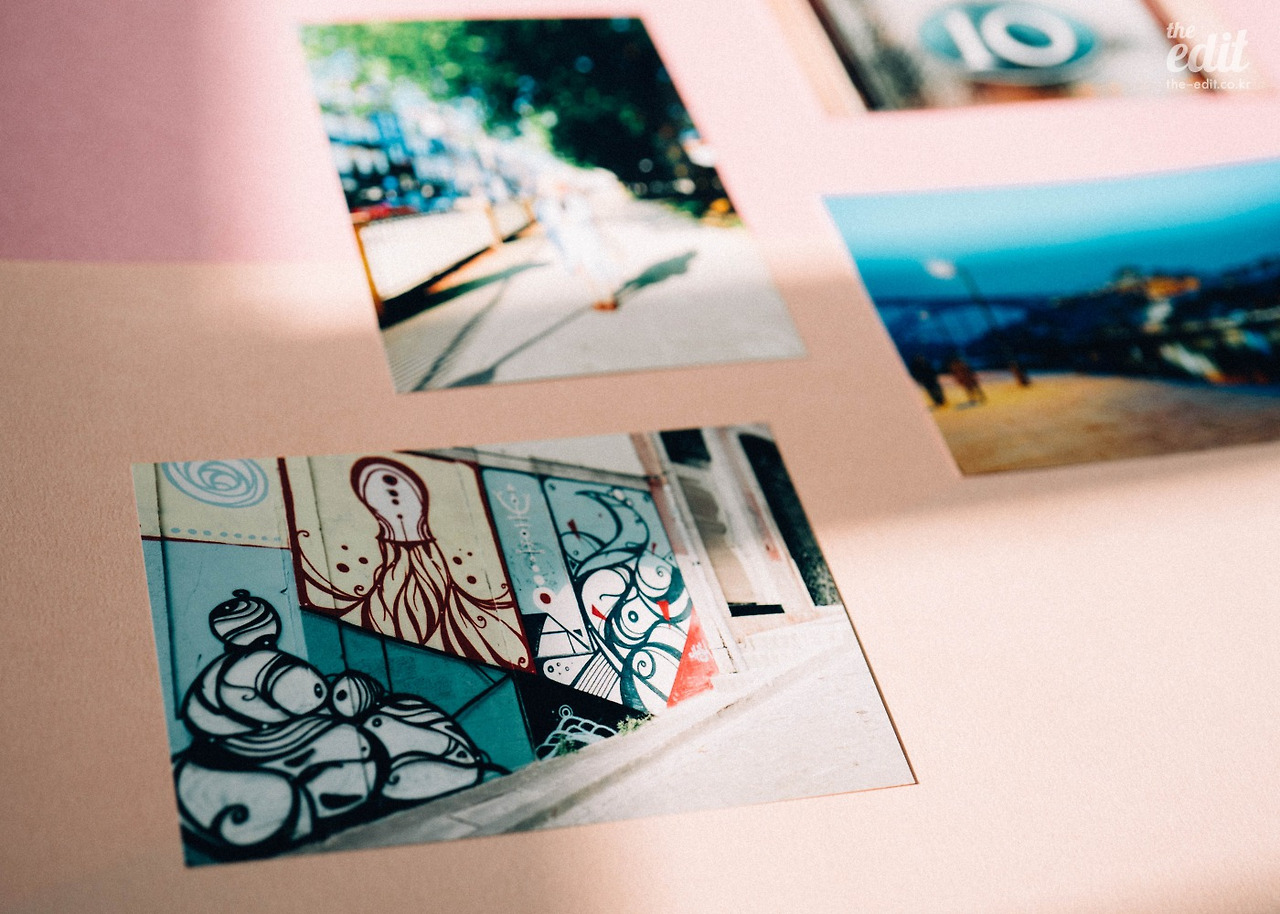 사실 폰으로 찍은 사진이라 크게 기대하지 않았는데, 선명하고 쨍하게 담긴 색감이 인상적이네요. 뭐라고 표현해야 할까요. 정말 필름 카메라로 찍어서 인화한 것처럼 선명하고 풍부한 색감이에요. 세 에디터가 각자 찍은 촬영한 사진을 뜯어보며 한참을 시시덕댔습니다. 스마트폰 화면에서 이미 확인한 사진인데도 직접 손에 쥐어보는 건 다른 맛이 있어요.