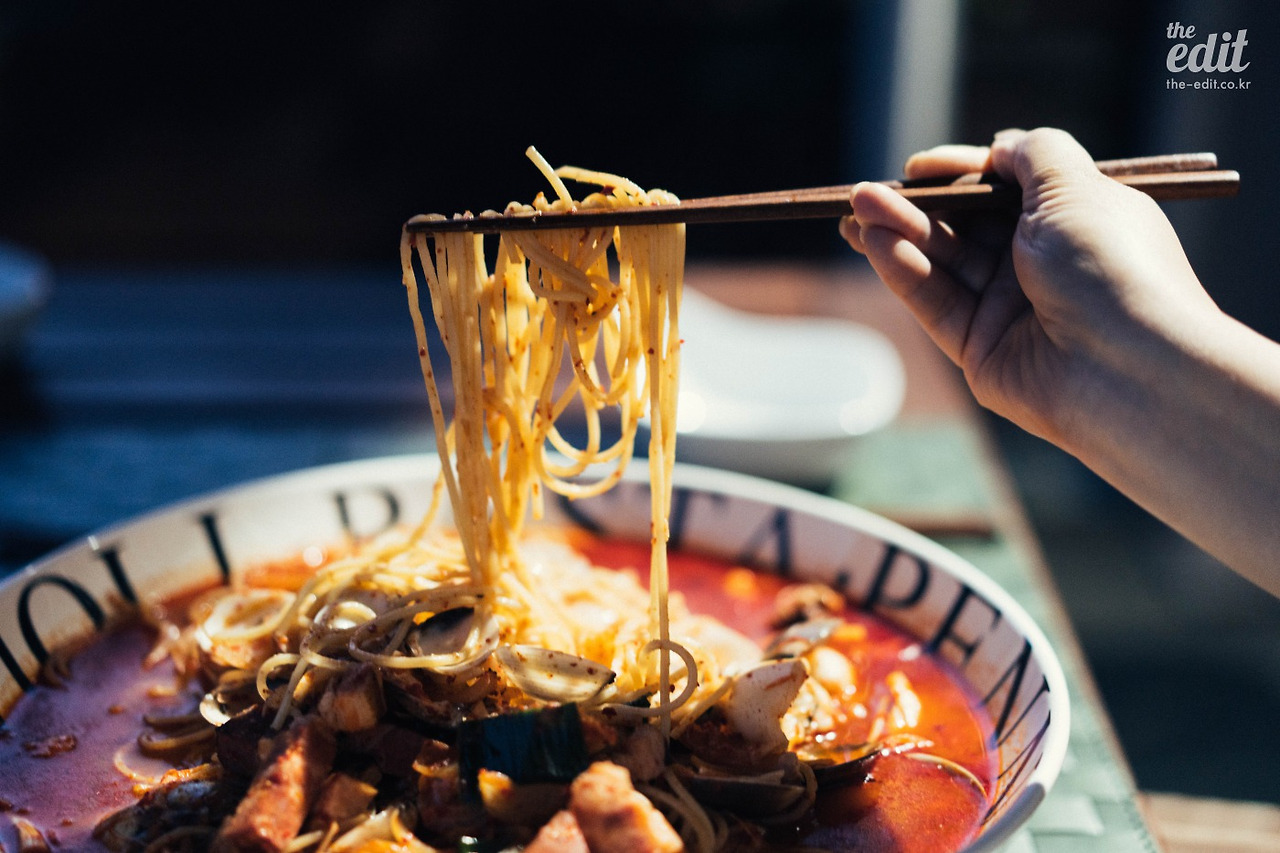 행여라도 깨질까 조심스럽게 포장한 문배술은 도착하자마자 캐리어에서 꺼내 냉장고에 잘 모셔뒀다. 서울에서 온 귀한 몸이니까. 완벽한 안주가 나타나면 꺼낼 생각이었다. 김이 모락모락 올라오는 짬뽕 파스타를 앞에 두고 우리는 그날임을 직감했다. 오늘이다, 오늘. 문배술을 따야 할 날이.