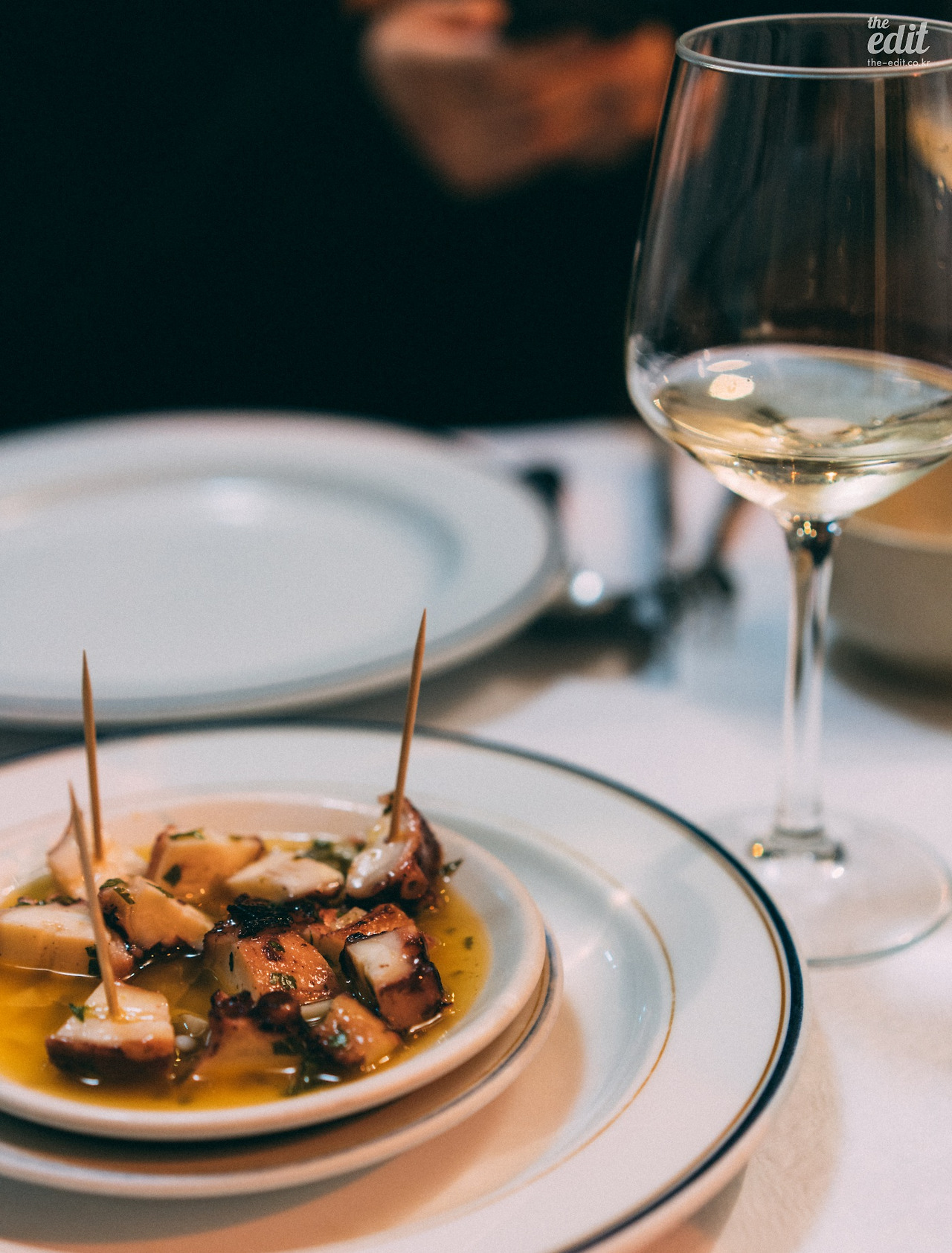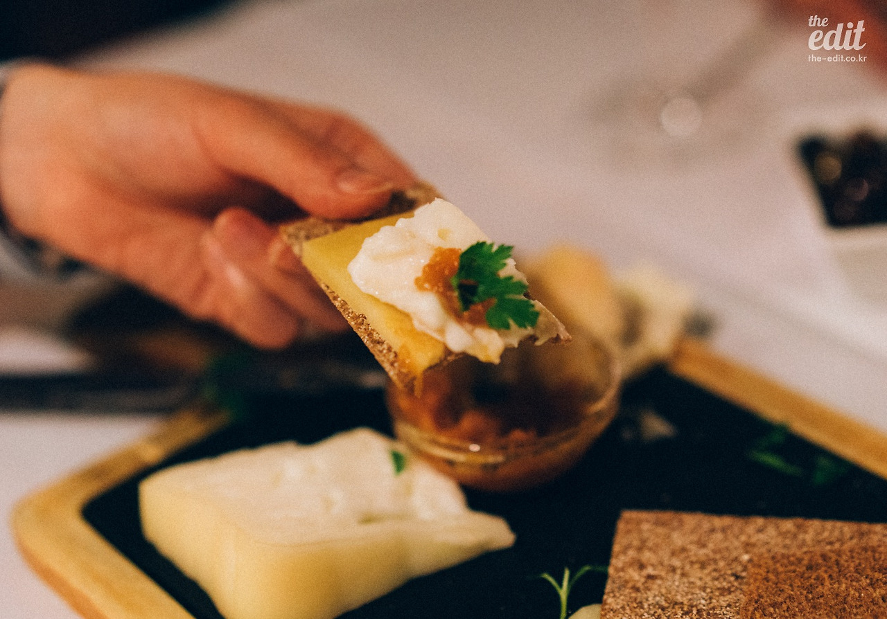 여기서 먹은 모든 요리가 만족스러웠다. 고기 메뉴도, 밥이나 문어 튀김도 훌륭하다. 심지어 식전빵도 남다르게 맛있었을 정도다. 호박잼과 세 종류의 치즈를 크래커에 올려 먹는 애피타이저를 주문했는데, 에디터 기은은 이날의 베스트 메뉴로 꼽았다. 와인 안주로 최고였다.