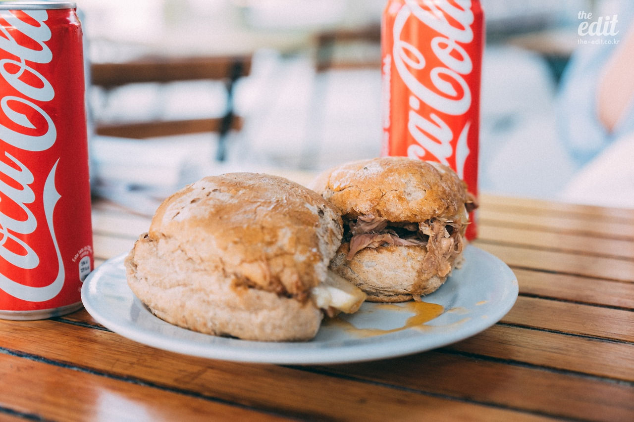 투박한 빵 사이에 돼지고기 바비큐를 잔뜩 껴준다. 치즈나 하몽을 추가할 수도 있다. 이 고기가 상당히 한국적인 맛이다. 돼지고기 장조림 같기도 하고 족발의 살코기 같기도 하다. 양념이 적절하게 배어든 고기와 빵을 베어 물면 밥과 고기를 함께 먹는 것처럼 밸런스가 좋다. 먹을 때 육즙과 양념이 줄즐 흘러내리니 조심해야 한다.