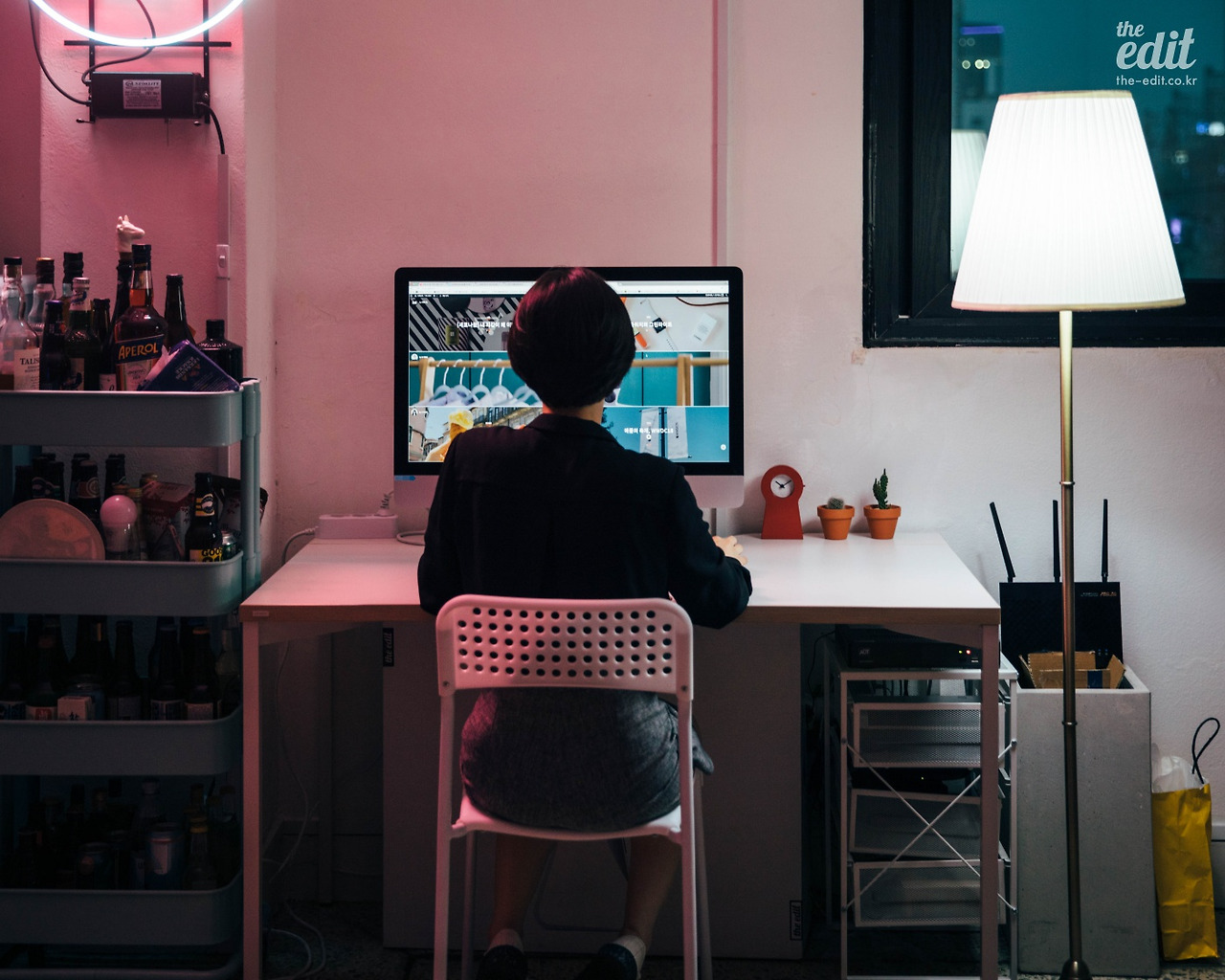 아차, 핑크색을 좋아하지 않는 우리 대표님, 에디터M의 표정이 굳었다. 다급하게 에디터M이 마시던 술병 빛으로 바꿔드리는 사회생활 스킬을 선보였다. 이제 좀 낫다고 씨익 웃으신다.