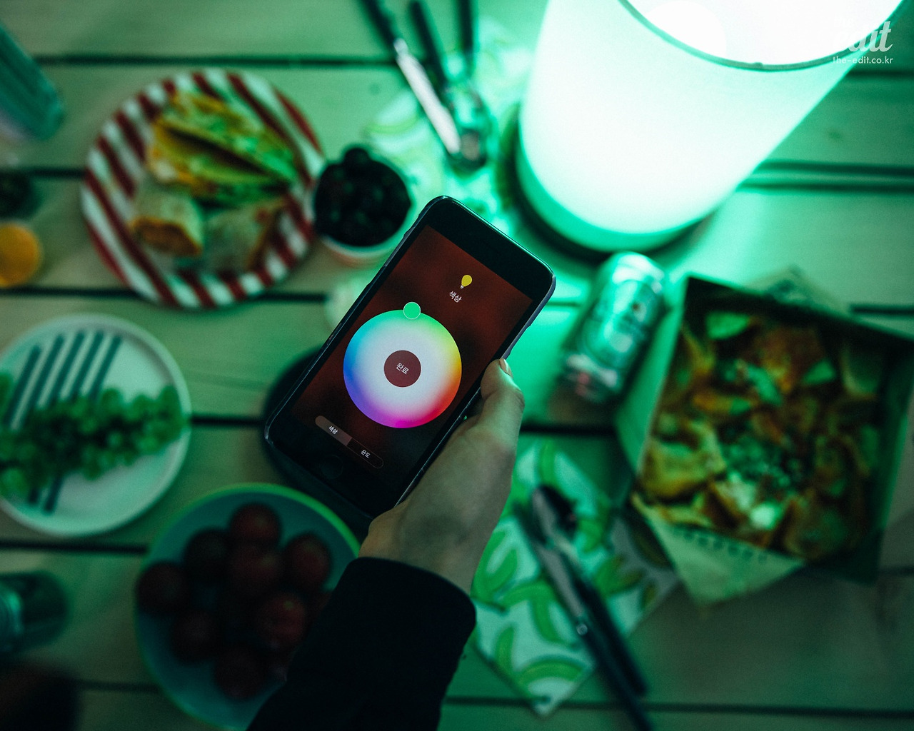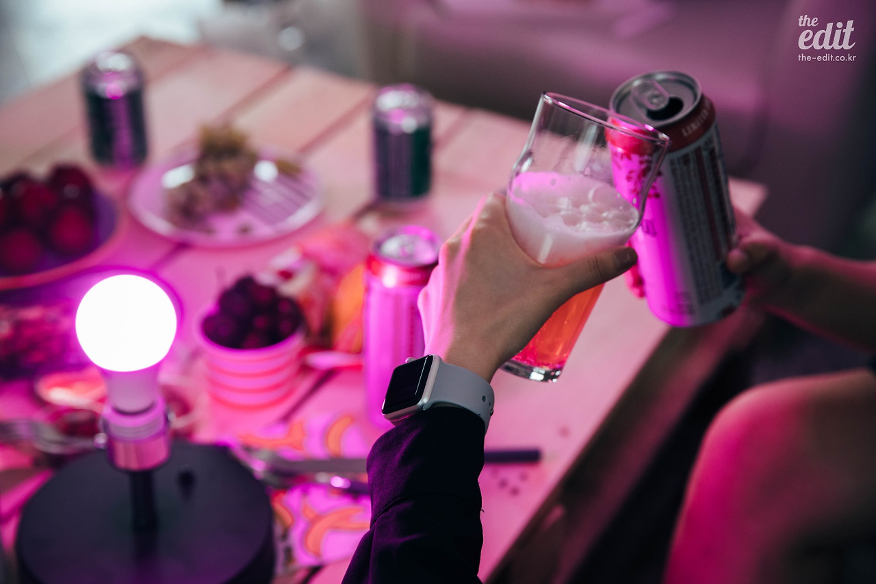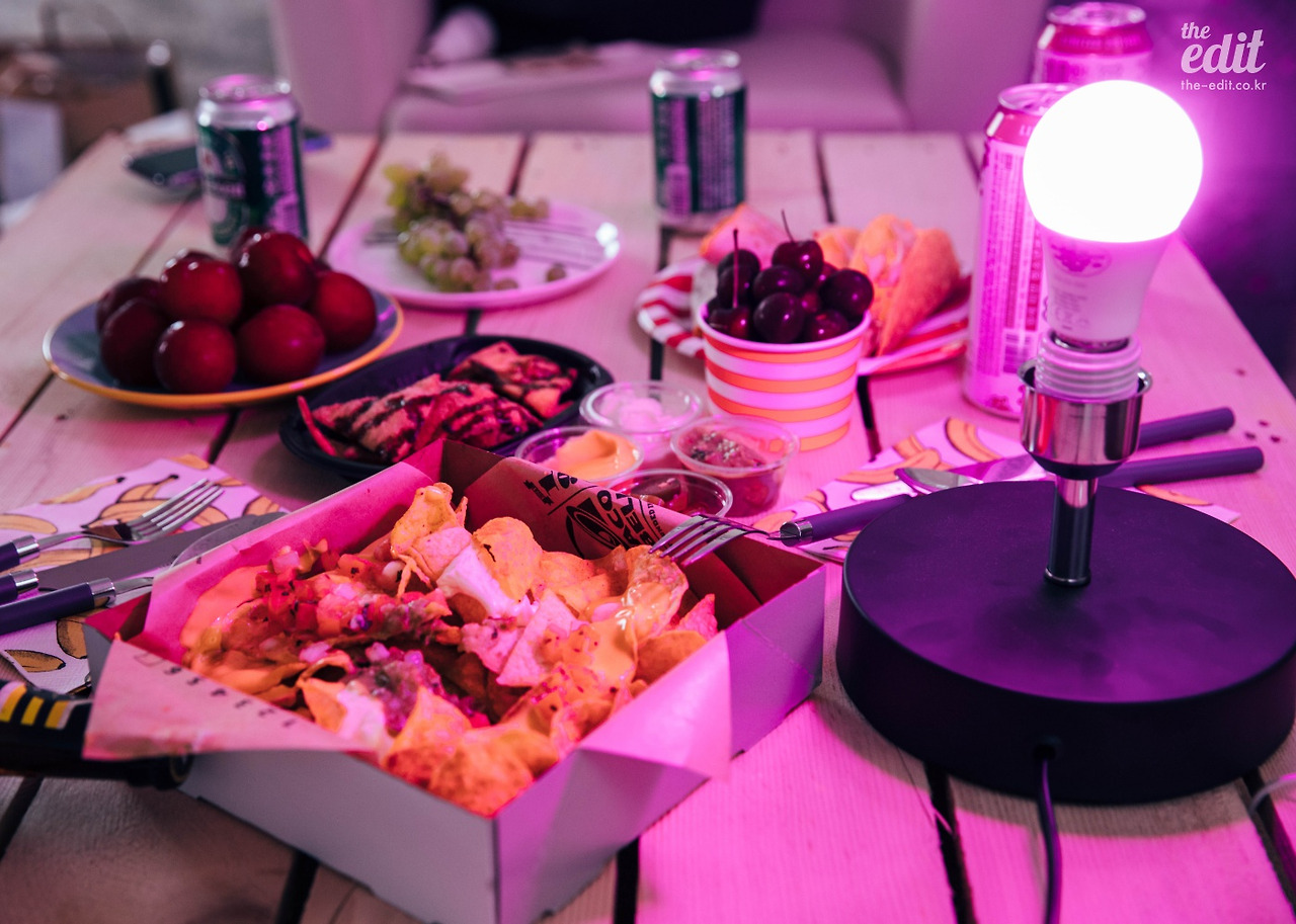 조명이 주는 인테리어 효과를 익히 알고 있었지만, 오늘처럼 톡톡히 써먹다니 꽤 만족스럽다. 무엇보다 분위기가 뜨거울 땐 화려한 색상을 뽐내다가, 일상으로 돌아와야 할 땐 청아한 컬러로 바꿀 수 있는 스마트함이 마음에 든다. 에너지 효율도 좋아 전기세 걱정도 없다. 한 개가 아니라 여러 개의 램프를 그룹으로 묶어 컨트롤할 수도 있다. 아, 부지런한 게으름뱅이는 솔깃하다. 창가에 다섯 개쯤 걸어두고 무지갯빛으로 연출해도 멋지지 않을까? 욕심이 늘어간다.