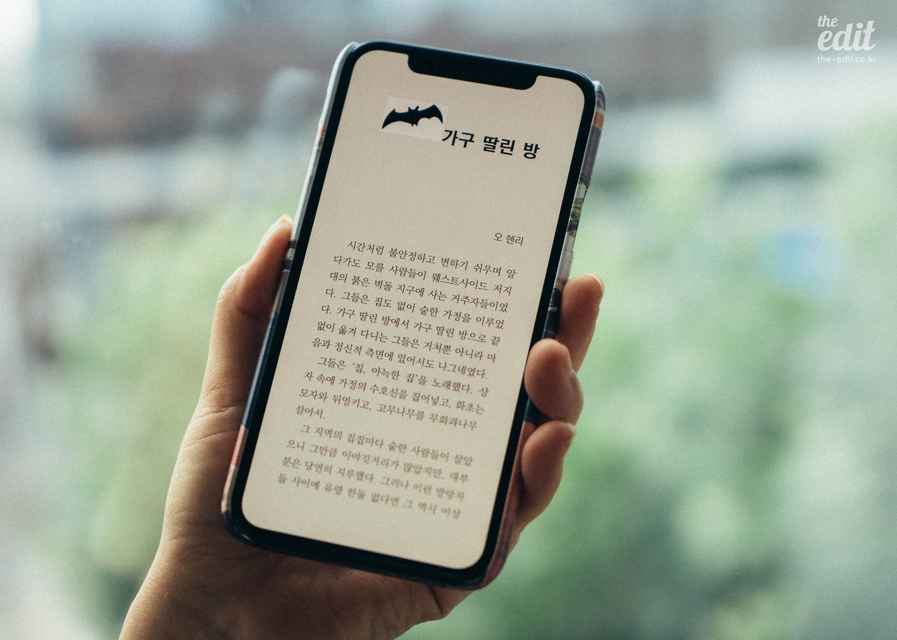 꼭 나처럼 페이퍼 프로를 통해 책을 읽어야 하는 건 아니다. 태블릿 PC나 스마트폰에 다운로드한 리디 뷰어를 통해 읽을 수도 있다. 나도 가끔 페이퍼 프로를 챙기진 않은 날엔 아이폰으로 책을 읽곤 한다. 기기 간의 연동이 아주 잘 되어 있어서 페이퍼 프로에서 읽던 책을 아이폰에서 열람하면, 읽던 페이지로 바로 넘어간다.