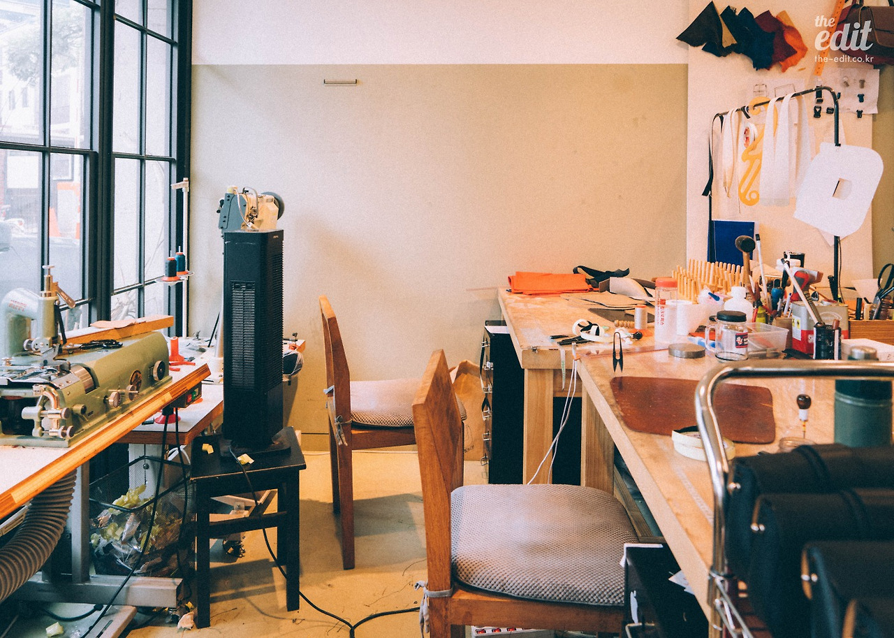 프루아의 모든 물건은 1:1 오더메이드로 주문 후에 만들어진다. 때문에 작업장의 중요성은 더 크다. 조성준 디자이너는 모든 일이 벌어지는 작업실을 지하로 내리고 남들에게 보여주기 위한 공간인 쇼룸을 1층으로 올리는 것보다 지금이 더 효율적일 것 같았다고 말했다. 듣고 보니 충분히 수긍이 간다.