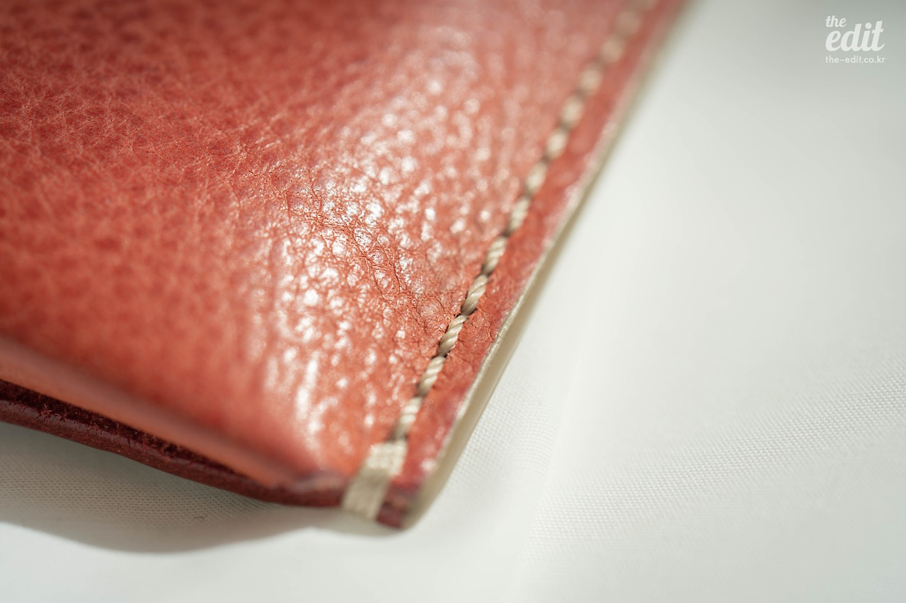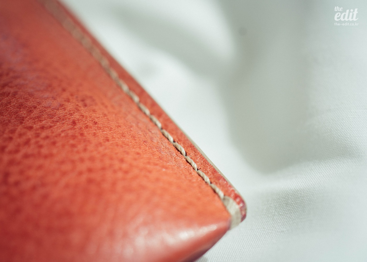 공장에서 만들어진 것이 아니라 사람의 손으로 한땀한땀 넣은 스티치는 아주 자세히 보아야 미묘한 비대칭이 보인다. 하지만 멀리서 봤을 때 눈에 거슬리지 않고 자연스럽다.
