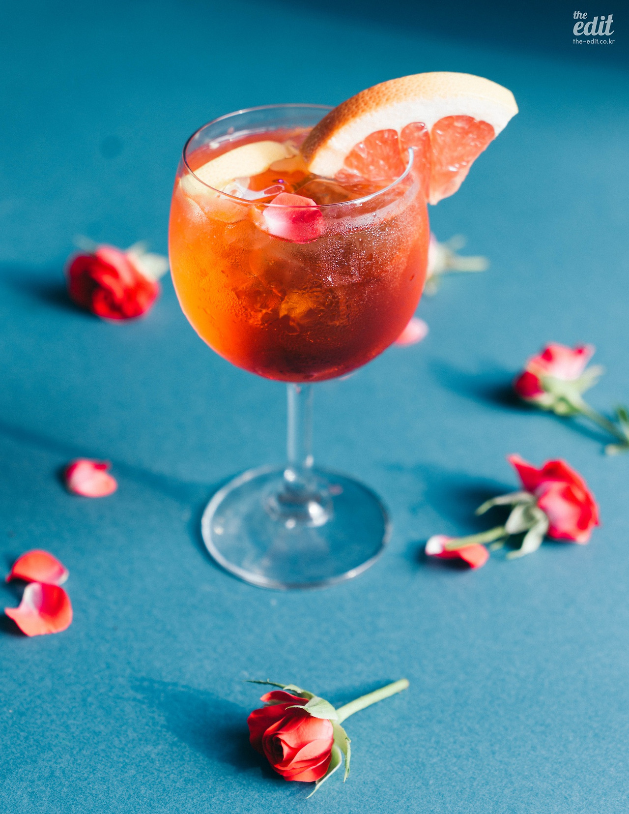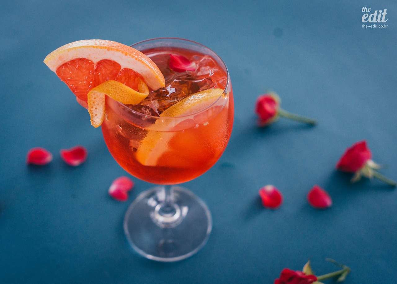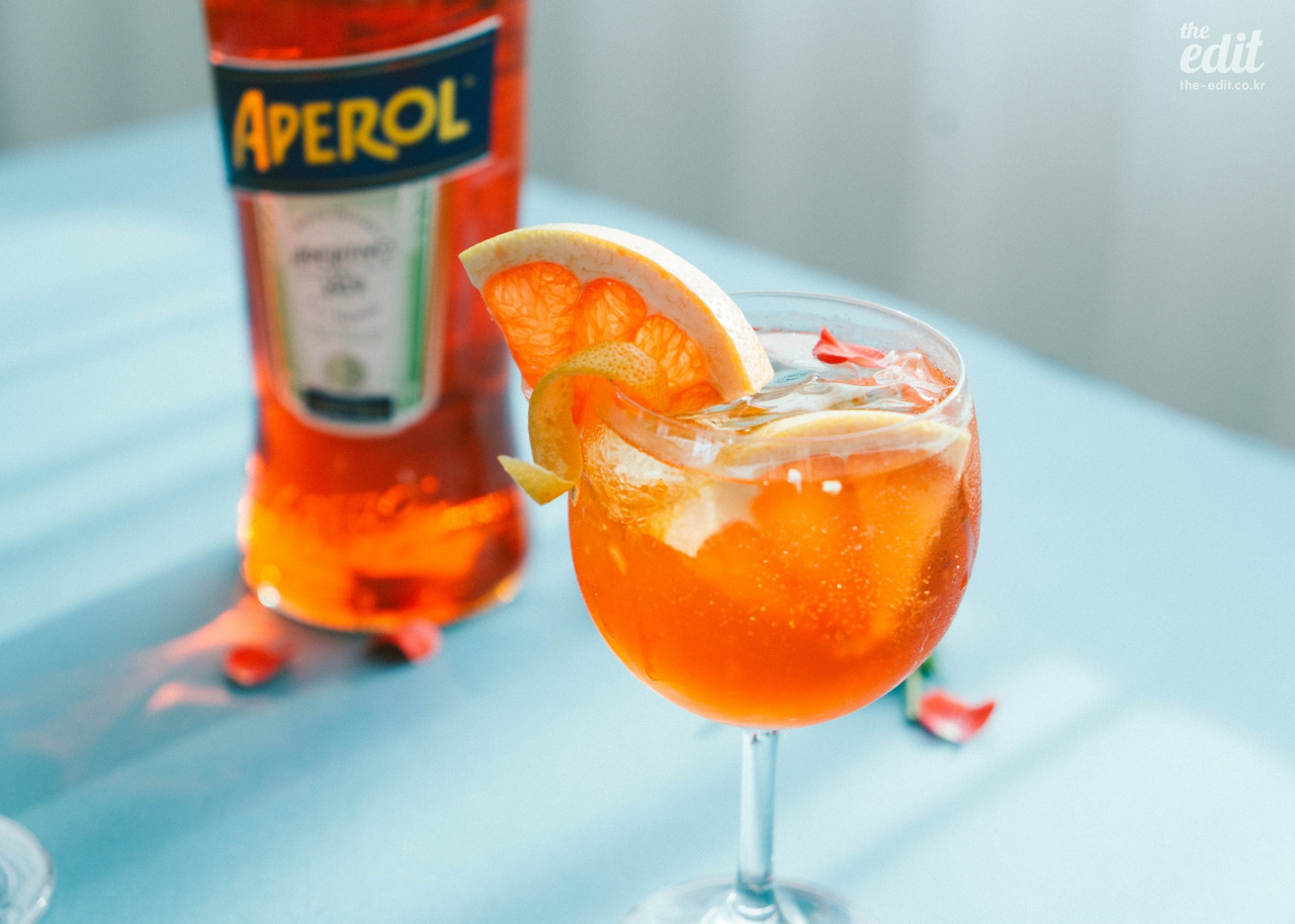 스프리츠는 여름날 쉽게 슥슥 말아 마시는 그런 칵테일이거든요. 잔에 얼음을 가득 붓고 아페롤 혹은 캄페리도 좋아요. 그냥 손에 잡히는 아페르티보를 적당히 따라줍니다. 그 다음 많이 달지 않은 스파클링 와인을 부어주세요. 원래는 프로세코라고 불리는 이탈리아에서 만든 와인을 넣는게 정석이지만 다른 것도 괜찮아요. 여기에 자른 오렌지나 자몽, 오이, 라임, 레몬 등 어울리는 과일을 넣으면 한 단계 더 고급스럽게 즐길 수 있죠. 다시 한 번 말하지만 정답 같은 건 없어요. 단맛이 부족하면 아페르티보를 더 넣고 너무 달다 싶으면 와인을 더 넣어주세요. 소맥보다 비율에 더 관대한게 바로 이 스프리츠의 매력이거든요.