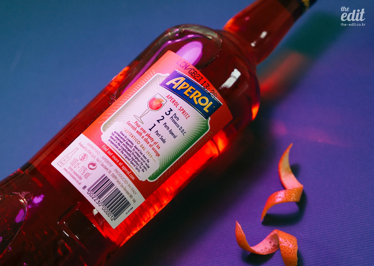 그에 비해 오늘의 주인공 아페롤은 알코올 도수 11도, 시럽처럼 달콤하고 오렌지의 향긋함을 갖춘 숙녀랍니다.