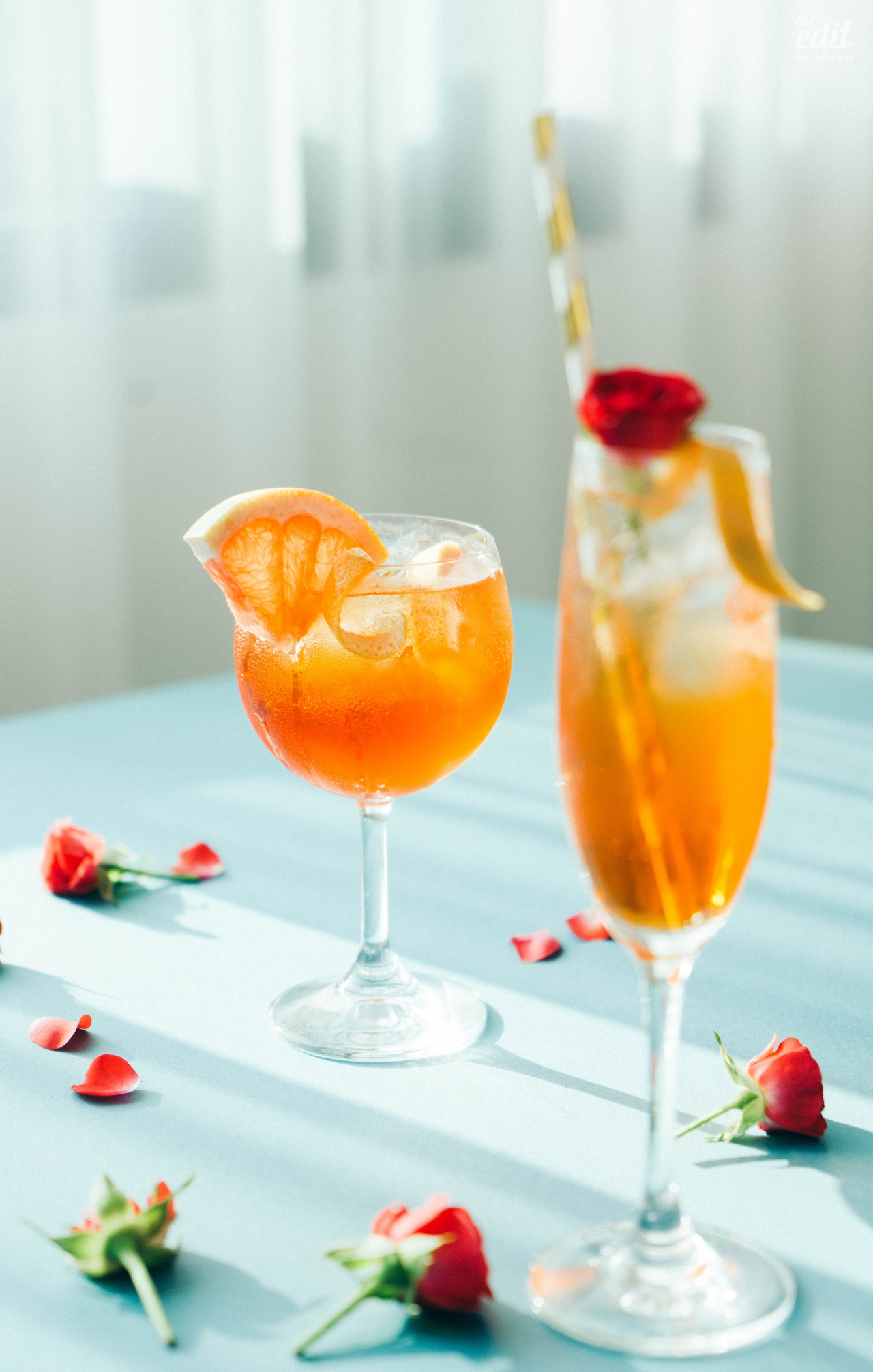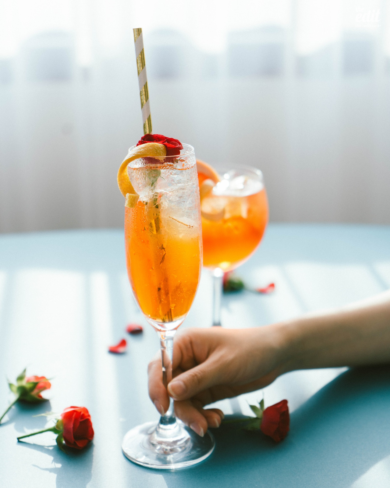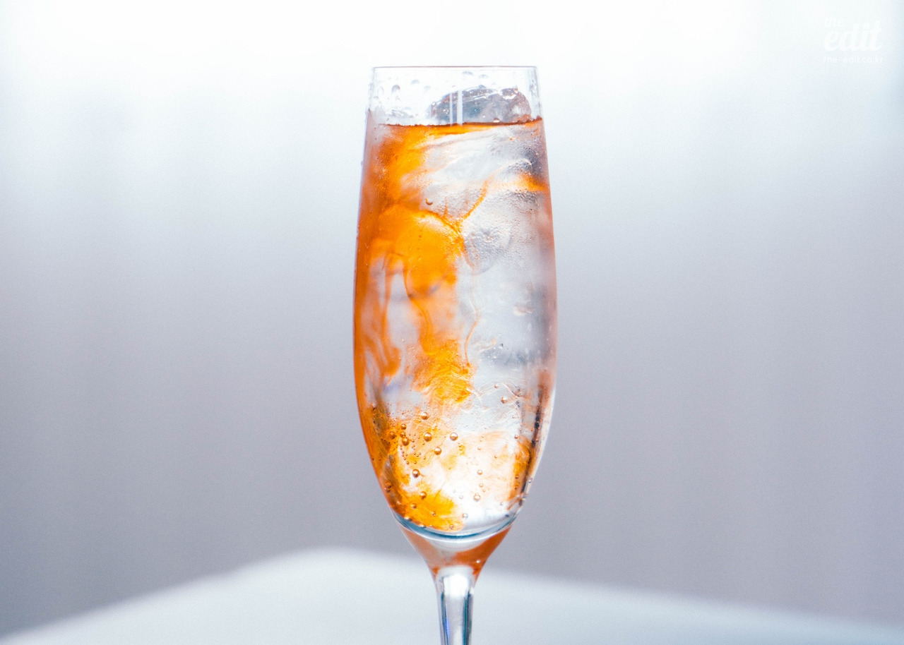 아페롤을 단독으로 마시지 않는다니 그럼 어떻게 마시냐고요? 바로 이렇게요. 스프리츠(Sprizt)라고 불리는 칵테일로 리퀴르를 희석해서 마시는 칵테일의 총칭인데요. 아페롤을 넣어서 마시는 칵테일은 아페롤 스프리츠라고 불러요.