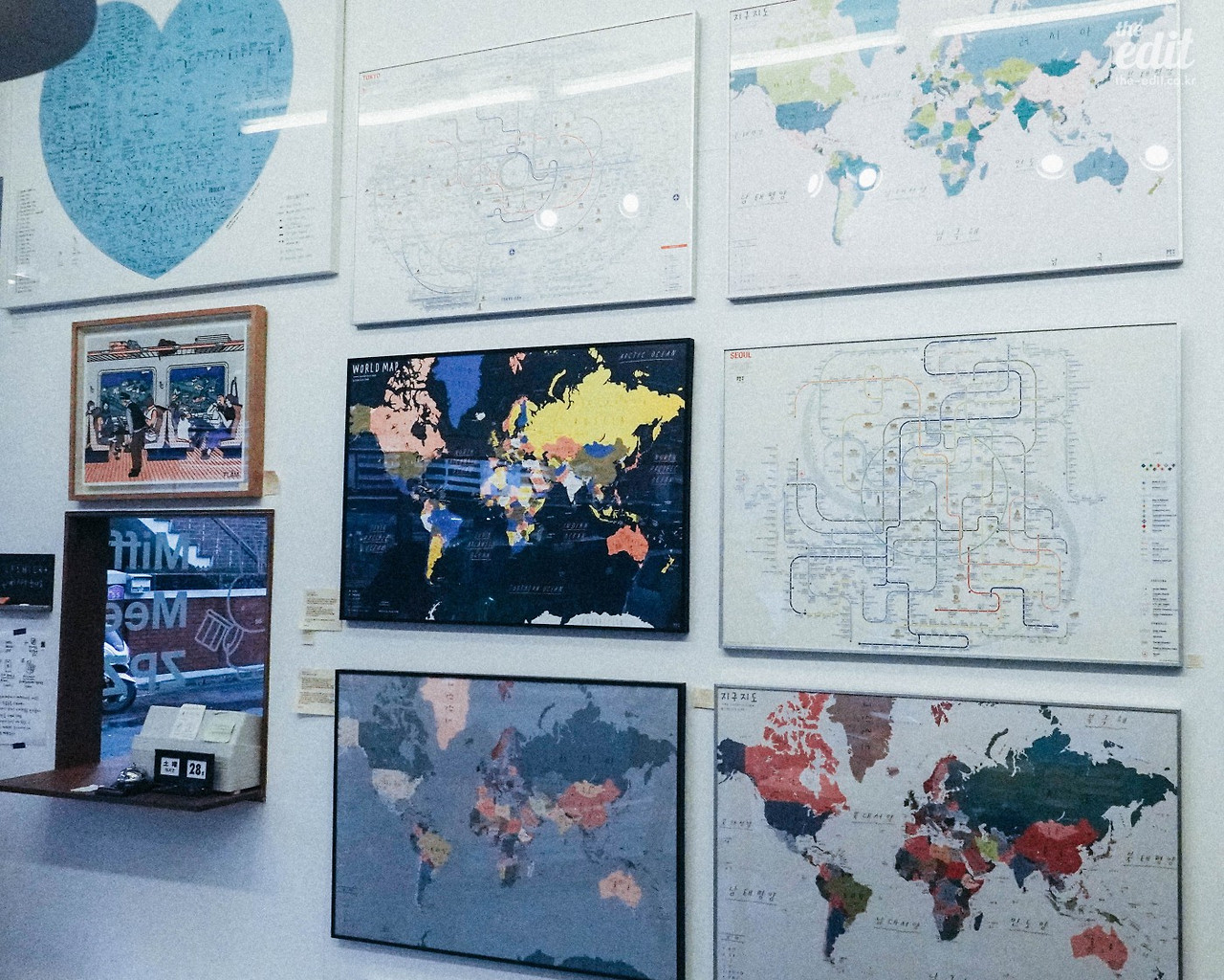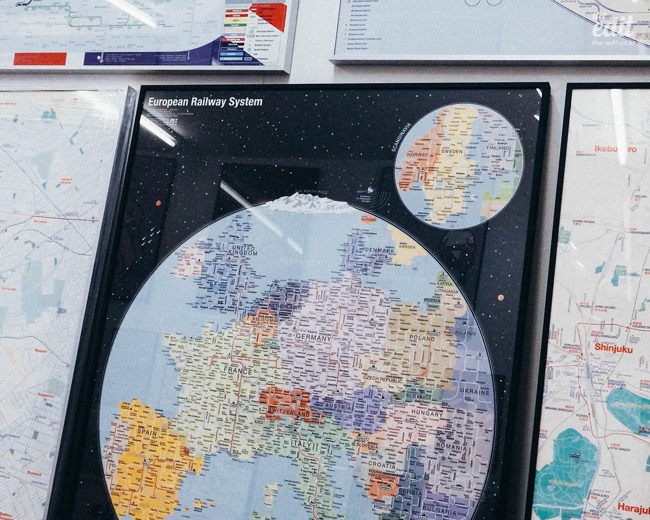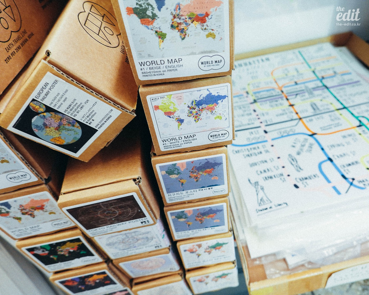 쇼룸 앞 한 쪽 벽면을 압도한 시티레일웨이 시스템 시리즈는 거대했다. A2, A3, 다양한 사이즈로 펼쳐진 세계의 지하철 노선도에서 도무지 눈을 뗄 수가 없더라. 실제로 가지고 다니며 참조하기란 어렵겠지만 여행지의 향수를 자극하는 예술작품이었다.