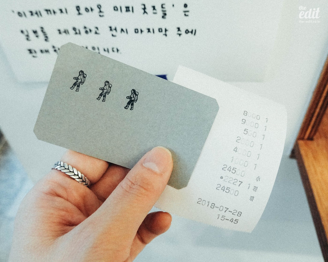 띠용! 직접 가격을 입력해 영수증을 만들어주는 아날로그 감성 충만한 계산대에서 귀여운 영수증을 받으며 생각했다. 이 공간을 지배한 귀여움의 원천은 뭘까. 귀여워도 너무 귀엽다.