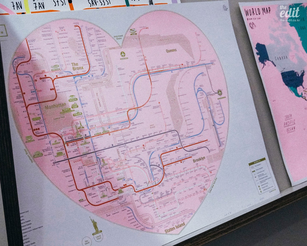 도시의 가장 복잡한 모습을 하나의 완성된 디자인으로 풀어낸 센스에 감탄했다. 하트 모양으로 그려진 뉴욕 지하철 노선도와 섬세하게 그려진 유럽의 것을 찬찬히 들여다보니 가슴이 두근거렸다. 노선도가 이렇게 아름다울 수 있다니.