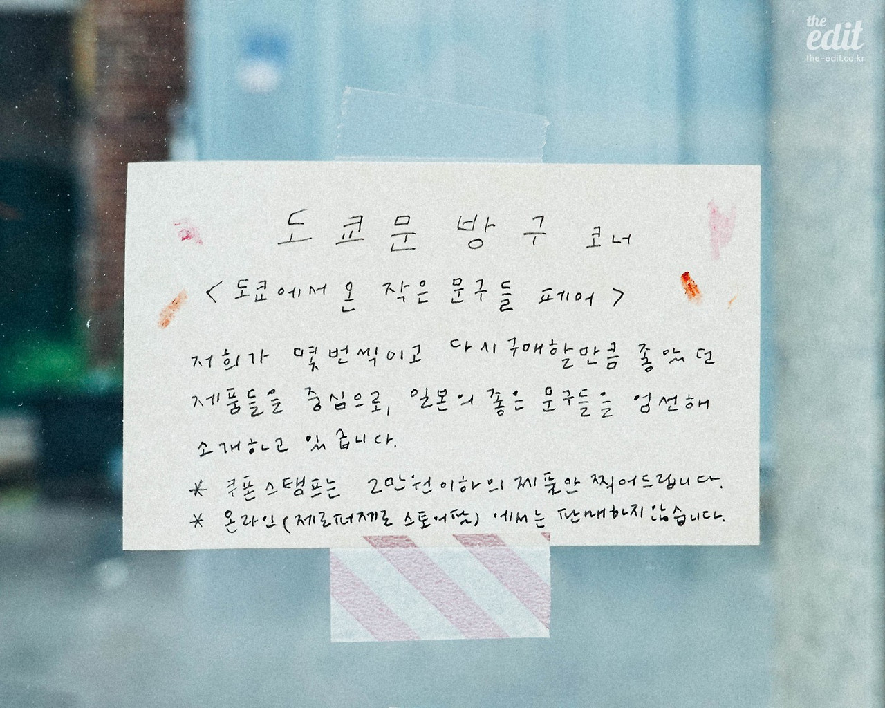 제로 스페이스의 주인장은 도쿄에 큰 향수가 있는 것으로 보인다. 도쿄에 다녀올 때 마다 야금야금 모았던 아이템들을 들여왔다. 일명 <도쿄문방구>로 몇 번씩이고 다시 구매할 만큼 좋았던 도쿄 제품을 판매하고 있었다. 아이템 하나하나에 친절하게 설명을 써붙여 놨는데 들여온 이의 정성이 느껴지더라.