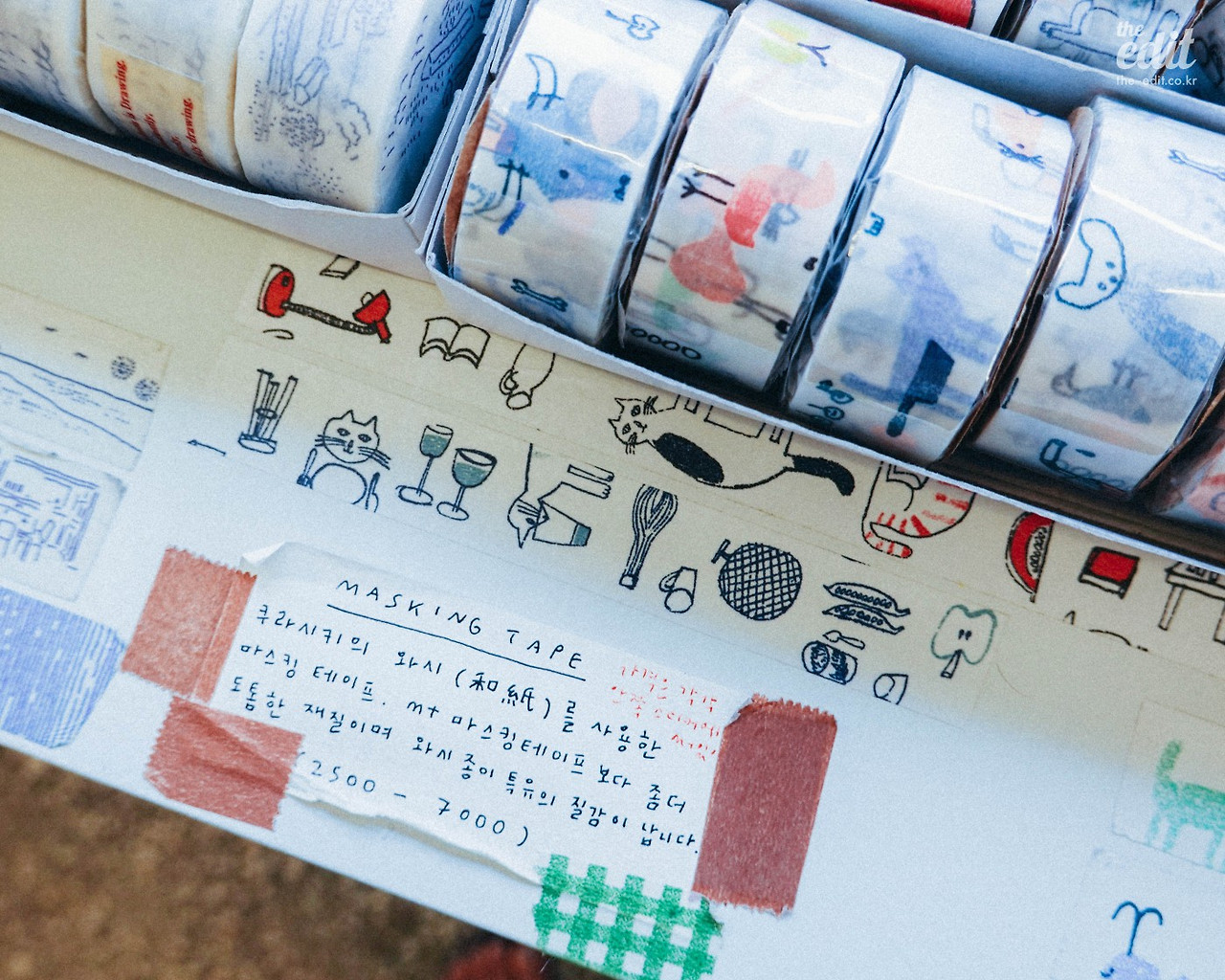 일상에서 큰 의미를 차지 하지 않던 수건걸이, 마스킹 테이프 커터, 마스킹 테이프도 상냥하게 써 놓은 소개글 덕분에 특별한 존재로 다가왔다.