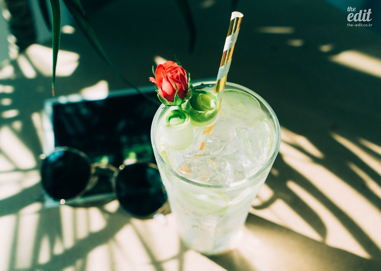 마침내 완성한 핸드릭스 진토닉. 프리미엄 토닉워터인 토마스 헨리와 역시 프리미엄 진인 핸드릭스 진을 넣었으니 그야말로 초 프리미엄이라 할 수 있겠다. 나폴거리는 오이의 향, 장미의 풋풋함, 고급스러운 쓴맛과 은근한 단맛까지. 사실 이런 거창한 설명은 필요 없다. 보는 것만으로도 가슴이 뻥 뚫리는 것 같은 청량함이 최고다.