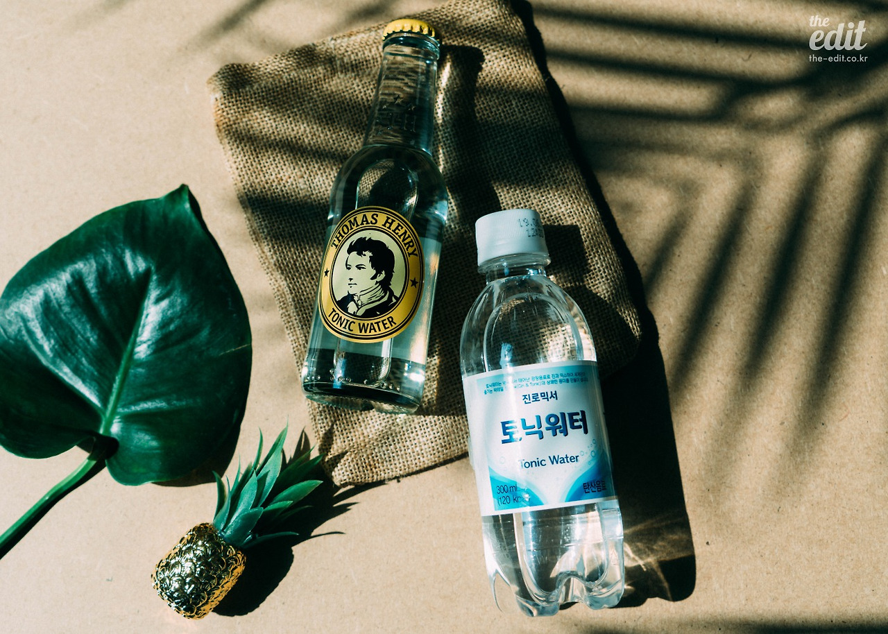 토닉워터(tonic water) : 기나나무에서 추출한 키니네 성분과 탄산 그리고 약간의 단맛을 더한 물.