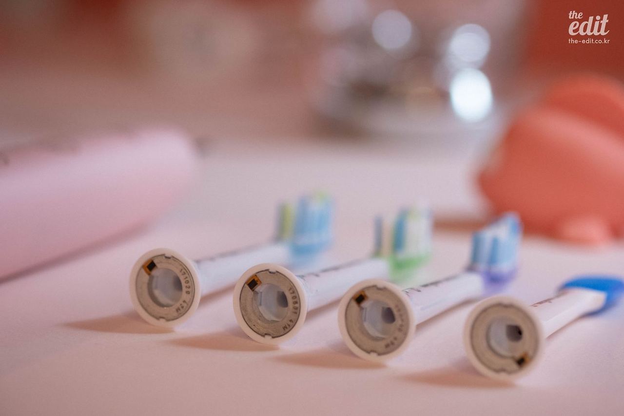 칫솔모는 총 3종으로 내가 평소에 쓰는 일반 칫솔보다 억센 편이다. 전원을 켜지 않고 양치도 해봤는데 썩 좋지 않았다. 프리미엄 플라그 디펜스 칫솔모는 일반 칫솔 대비 최대 10배의 플라그 제거 효과가 있으며, 프리미엄 잇몸케어 칫솔모는 2주 만에 최대 7배 더 잇몸 건강을 개선해준다고 한다. 프리미엄 화이트 칫솔모는 치아 얼룩을 3일 만에 일반 칫솔보다 2배나 제거해준다고. 각 칫솔모의 긴 이름만큼이나 많은 효과가 있다고 하지만 솔직히 일주일 쓰면서 눈치채기는 어려웠다. 칫솔모와 모드를 때마다 바꿔가며 써봤지만 결과는 비슷했다. 손끝으로 칫솔모를 만져봐도 각각의 차이를 드라마틱하게 느끼기 어렵다. 오히려 너무 많은 선택지가 있어 혼란스러웠다. 다이아몬드 클린 스마트의 양치 게임을 제대로 즐기기엔 내가 충분히 섬세하지 못한 걸까.