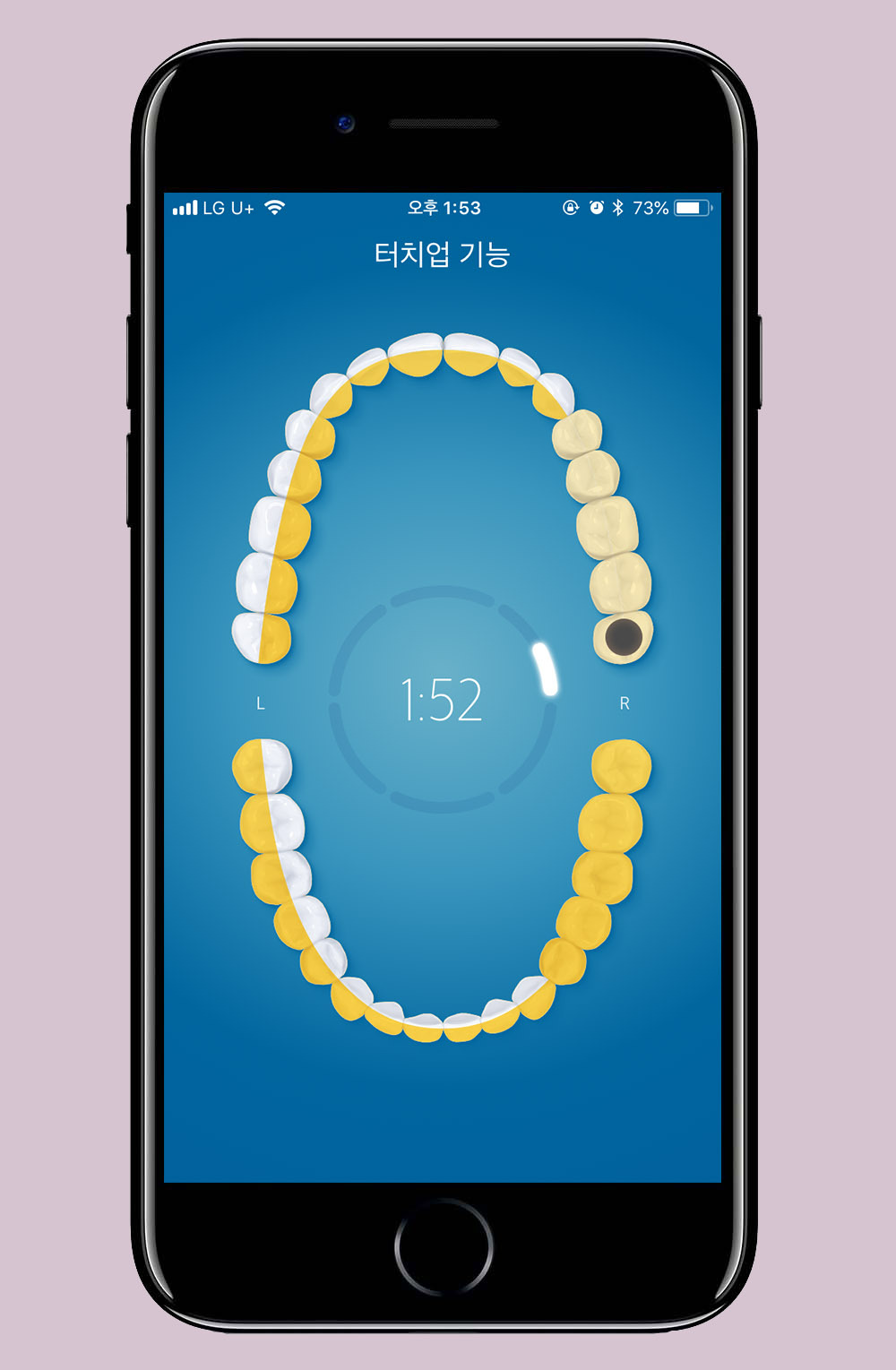 양치 방법은 쉽다. 스마트폰과 칫솔을 페어링한 후 원하는 모드를 택해 3D맵에서 띄워 주는 루트를 보고 따라 닦으면 된다. 흡사 RPG 게임 같다. 압력을 가하거나 빠르게 움직일 필요도 없다. 너무 깊게 갖다 대면 잇몸이 상하지 말라고 경고등이 켜진다. 손목은 거들 뿐. 그냥 시키는대로 칫솔을 이동시키며 부드럽게 갖다대면 그만이다. 일반 칫솔보다 확실히 손목에 무리가 덜 간다.