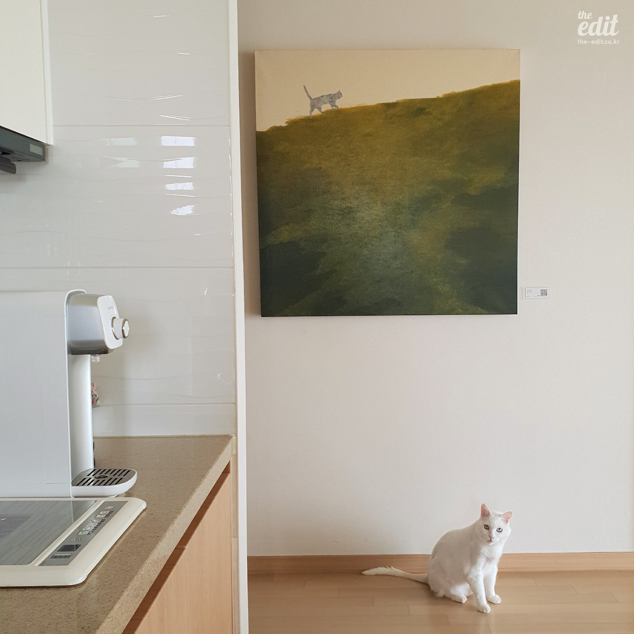 쉽게 말해 그림도 정수기처럼 렌탈 하듯 집에서 유명 작가의 작품을 단기간 빌릴 수 있는 서비스란 소리. 이 작품 가격은 360만원선. 월 대여료는 15만원이다. 그림을 고른 이유는 단순했다. 우리집 고양이와 닮아서. 그리고 오래 봐도 눈이 피곤하지 않았기 때문이다. 한지가 한 겹 감싸져 있어 잔디가 움직이는 듯 섬세한 붓 터치가 매력적인 작품이었다.