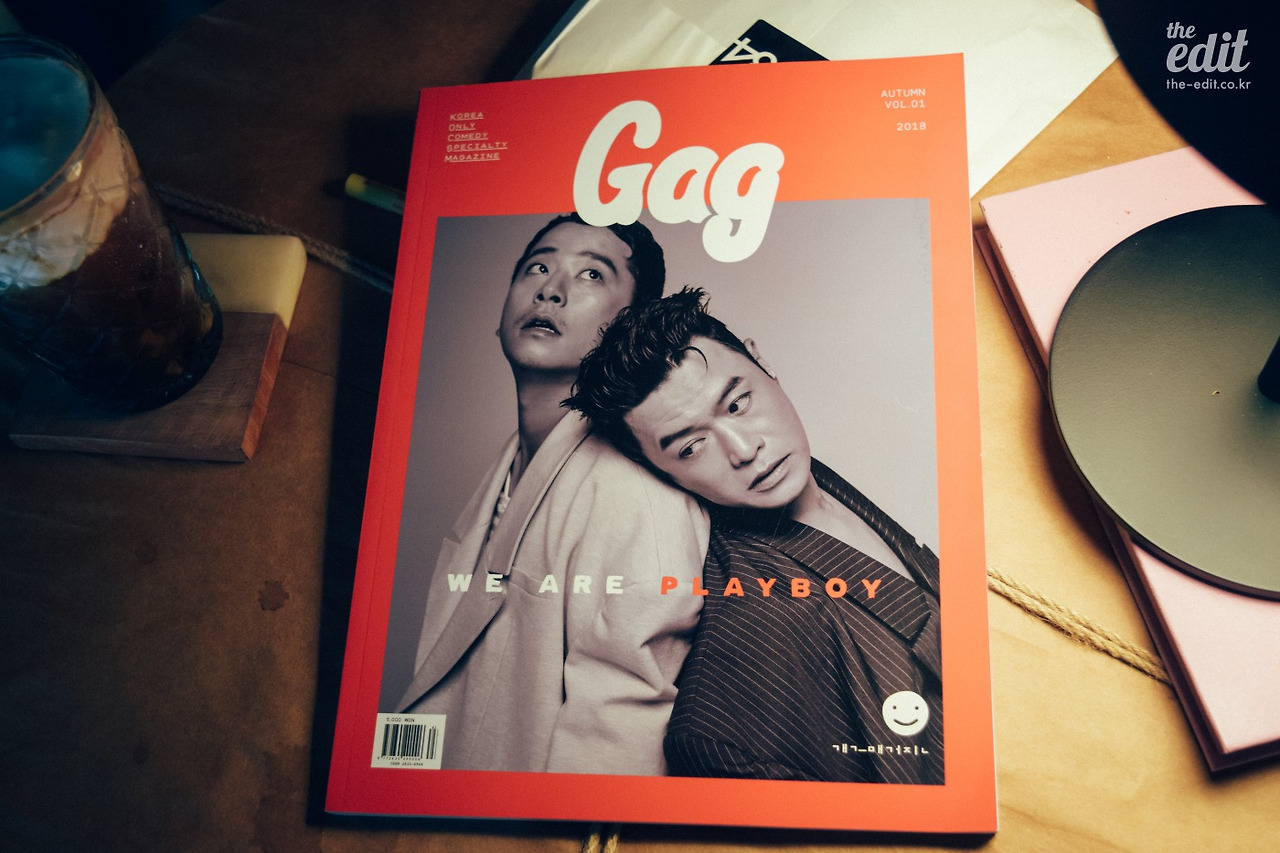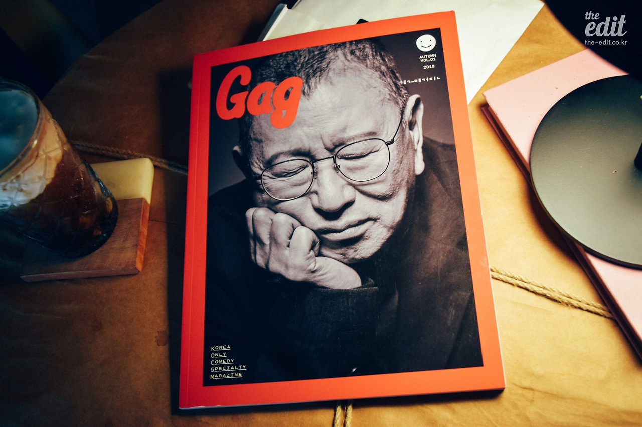 이 잡지를 알게 된 건 뉴스를 통해서였다. 내가 아침 루틴은 네이버 뉴스란에 몇 가지 키워드를 검색해보고 관련 뉴스를 찾는 일이다. 처음에는 ‘현대카드’ 그 다음에는 ‘로우로우’ 그다음에는 ‘잡지‘를 검색해본다. 그때 잡지로 검색을 하고 봤던 기사가 코미디언 오나미의 화보에 대한 내용, 그 화보가 실린 매체가 개그매거진이었다. 처음 들어보는 잡지 이름에 두근거렸다. 당장 알라딘서점에 접속해 결제했다. 개그매거진은 개그전문지이고, 8월에 창간한 따끈따끈한 잡지다. 창간호 표지는 김대희와 김준호 그리고 잡지 뒷면에는 전유성의 화보가 있다. 보통 다른 잡지에서는 뒷면에 광고를 넣곤 하는데, 여긴 뒷면을 다른 커버로 만든 것이 실험적이었다.