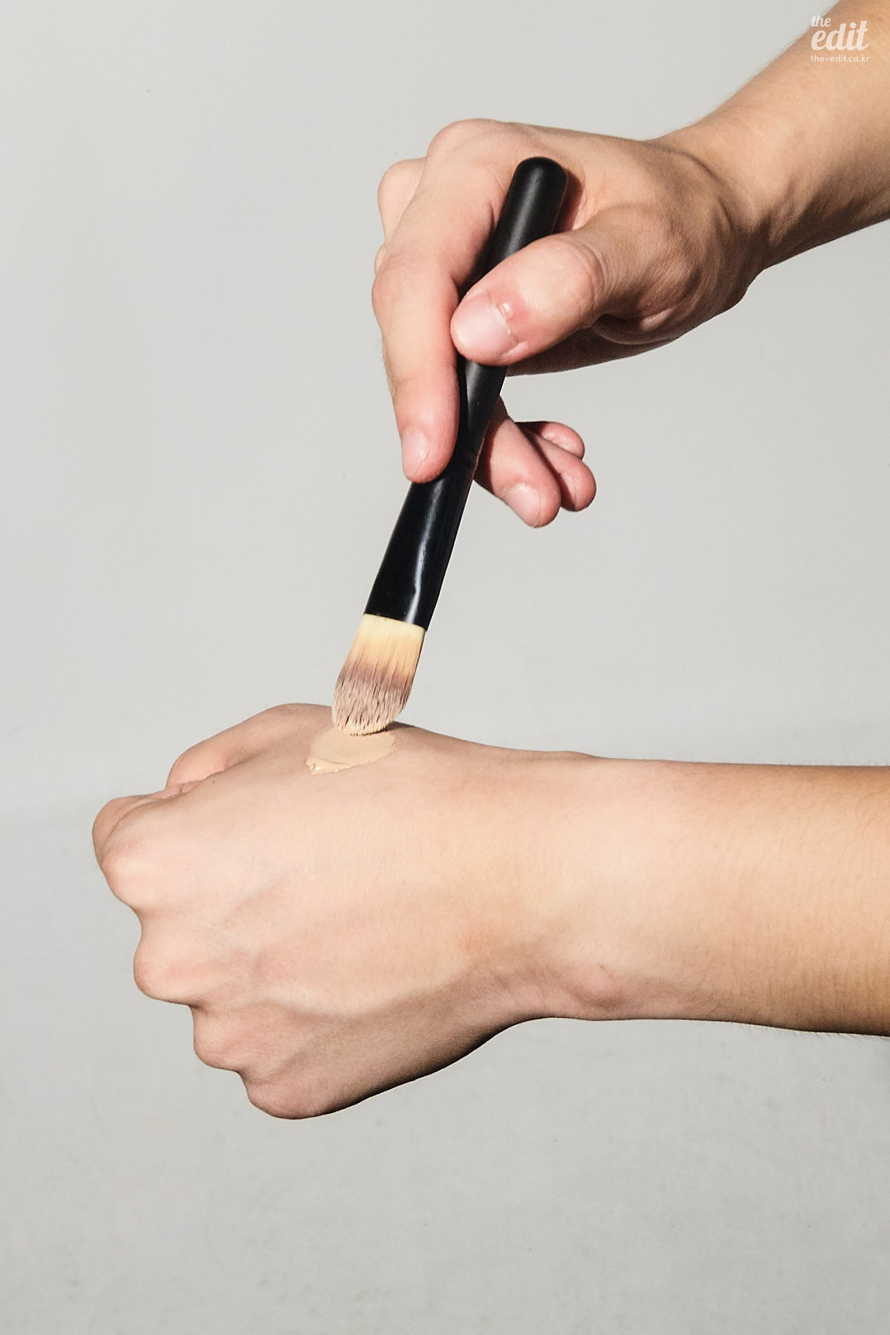 파운데이션을 바르는 방법에는 크게 손, 브러시, 스펀지가 있는데, 나는 브러시로 쓴다. 손으로 하면 뭉치거나 뜨고, 스펀지는 파운데이션을 흡수하는데, 나는 내 피부에 바르기도 부족한 샤넬 화장품으로 스폰지를 꾸며줄 만큼 풍족한 사람이 아니다. 조금씩 찍어서 피부에 잘 펴 바르자.