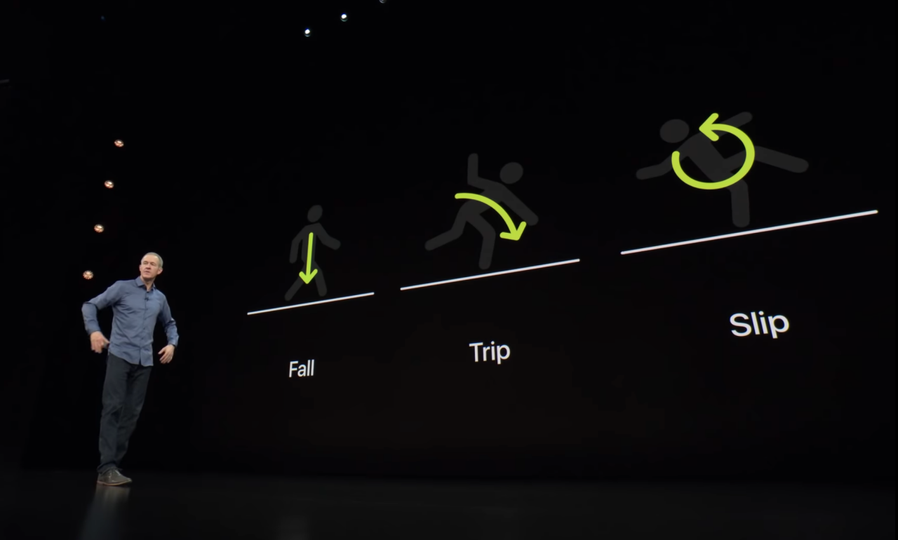 애플워치 시리즈4에 추가된 ‘넘어짐 감지’와 ‘긴급 구조 요청’ 기능은 이를 잘 보여주는 예입니다. 이번 키노트에서 아주 재밌었던 부분이기도 하구요. 누구나 일상에서 발을 헛디뎌 넘어질 수 있습니다. 문제는 이렇게 넘어지면서 생각보다 큰 부상이 발생하기도 한다는 거죠. 더러는 넘어질 때 큰 충격을 받기도 하고, 자신의 체중을 다시 일으킬 힘이 없을 수도 있습니다. 애플은 사람들이 넘어지는 동작을 연구하기 시작합니다. 단순할 것 같지만 수 천명의 사람들이 넘어질 때의 동작을 분석해야 했다고 하네요. 그리고 결국, 사람이 넘어지는 순간에는 어떤 특징적인 모션 패턴이 있다는 걸 알아냈습니다. 몸이 떨어질 때 사람의 팔이 어떻게 반응하는지를 파악한 거죠. 가속도계와 자이로스코프 센서가 민첩하게 특정 패턴을 분석하게 됩니다. 이 패턴을 바탕으로 애플워치 사용자가 넘어졌다고 판단하면, 화면에 경고를 띄웁니다.