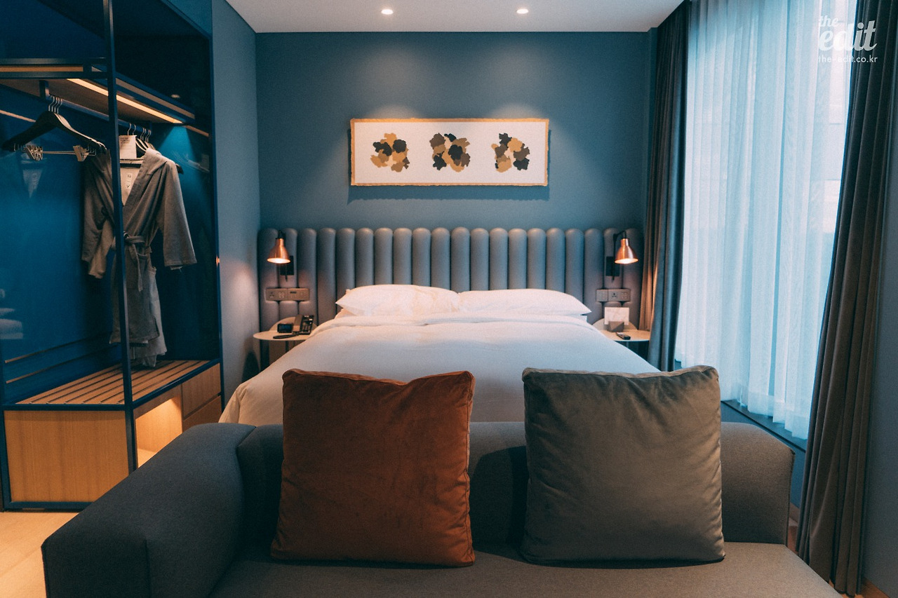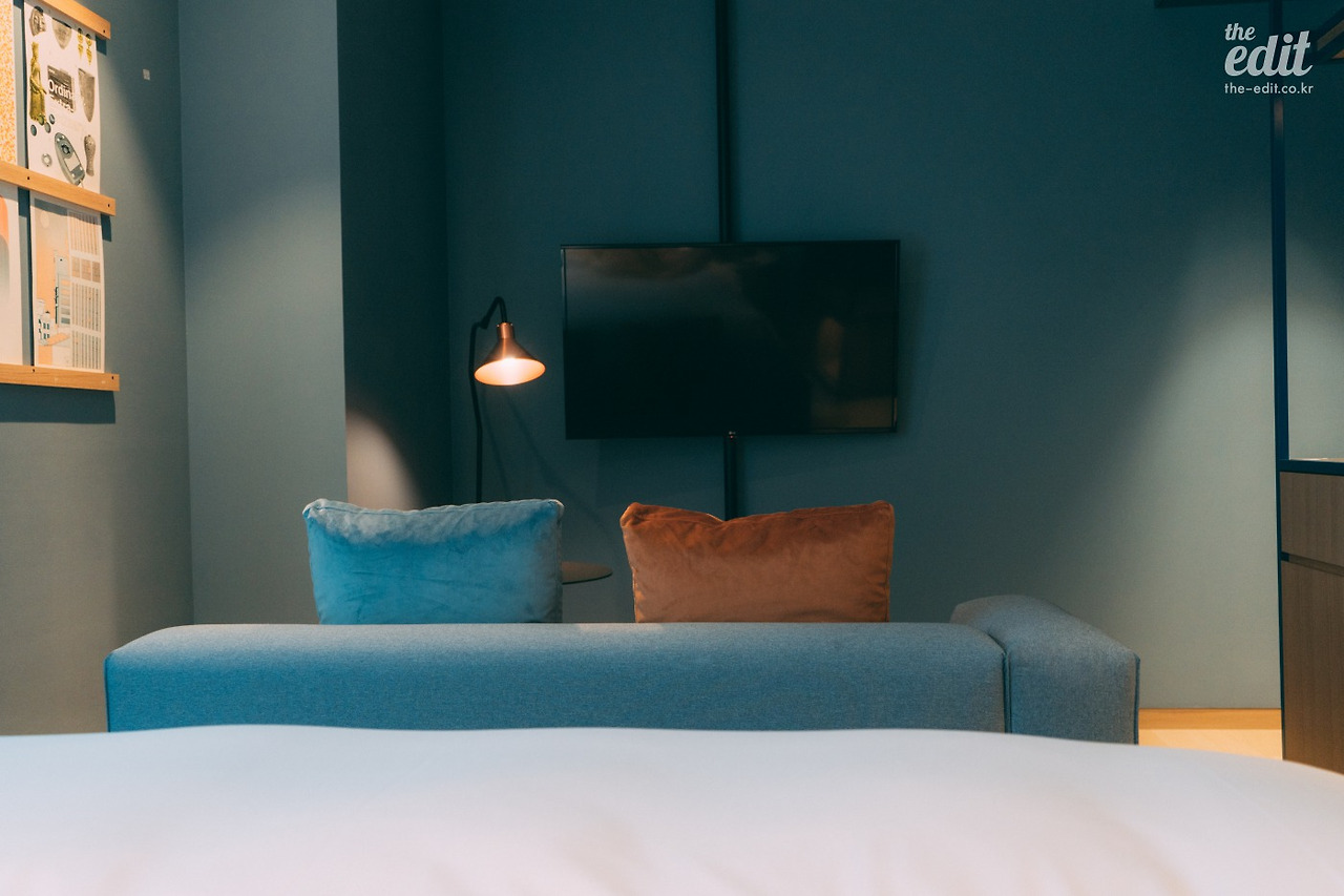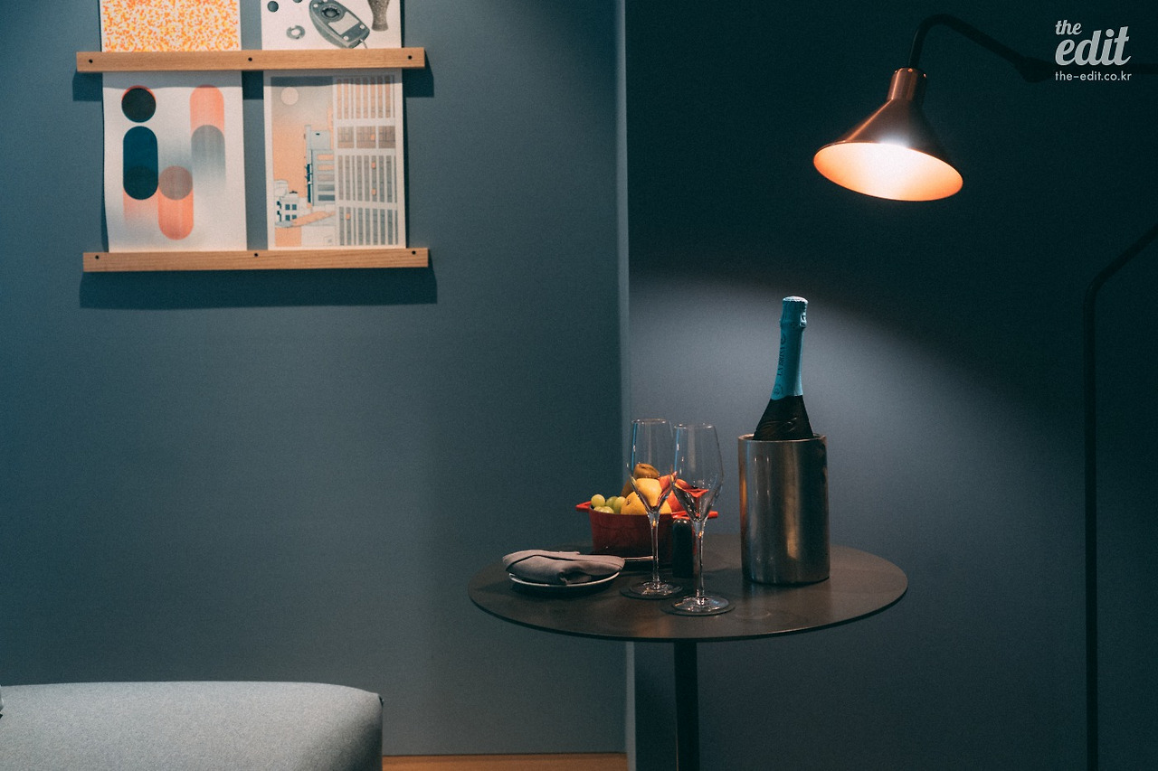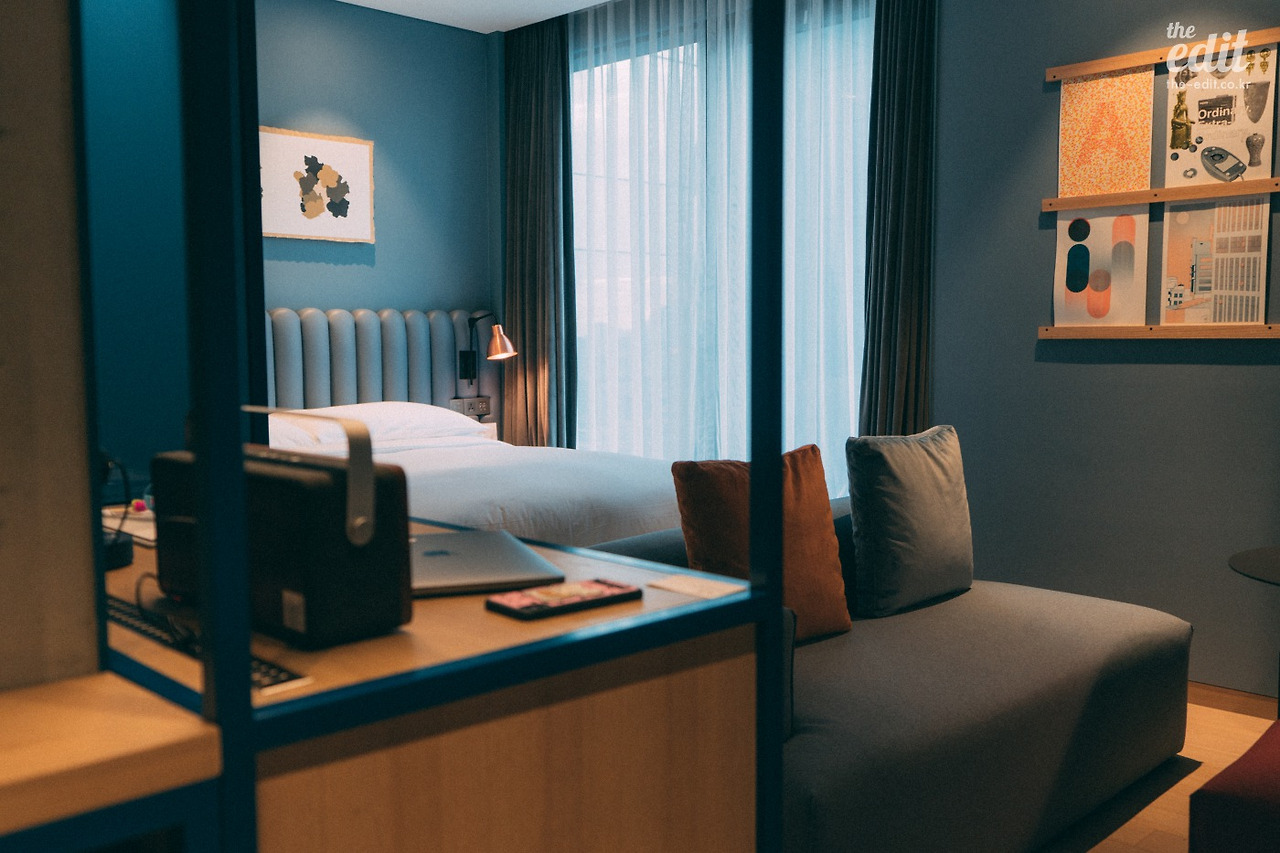 홍대나 강남 인근의 부티크 호텔이 그러하듯 큰 객실은 아니다. 문 뒤에 여행 가방을 풀어 놓으니 나중에 문을 열고 닫기가 벅찰 정도였다. 하지만 비좁다는 느낌은 들지 않는다. 주어진 공간을 잘 활용한 덕분이다.
