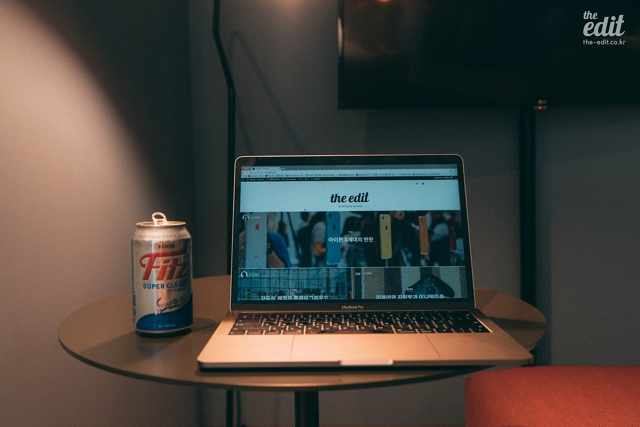 일단 들어가자마자 무료로 제공되는 맥주 한 캔을 땄다. 노트북부터 펼치는 어쩔 수 없는 직업병.