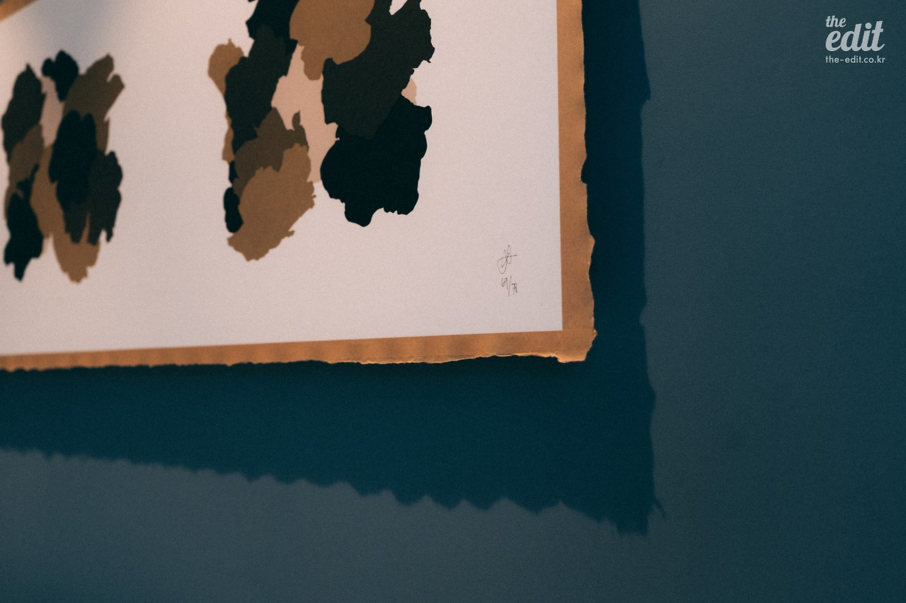 침대를 정면으로 바라볼 때의 뷰가 그림 같다. 머리맡에 붙은 그림과 벽면의 엠보싱 쿠션, 은은하게 떨어지는 조명. 평면적인 인테리어에 볼륨감과 그림자를 활용해 분위기를 만들었다. 조명이 닿는 곳과 어두운 곳의 컬러 대비가 근사하다.