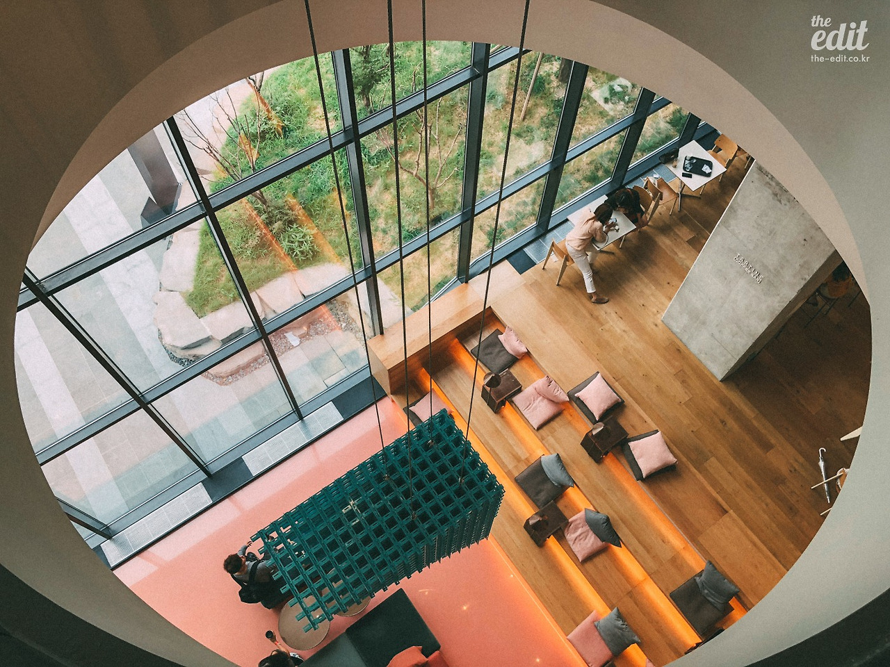 2층에서 원형 계단 아래를 내려다보면 1층의 베이커리가 보인다. 다들 여기서 사진을 찍는다. 뒤에도 언급하겠지만 이 호텔은 굉장히 포토제닉하다. 하루 쉬어가는 이들이 만족할 만한 인증샷을 찍기에 알맞은 공간이다. 컬러나 소품을 영리하게 활용했다.