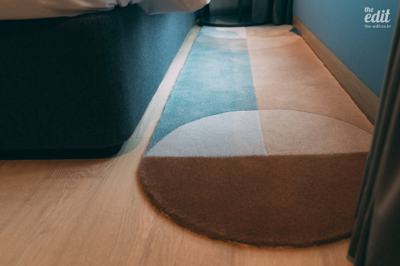 침대에서 내려오면 발바닥이 포근하다. 좌우에 기다란 러그를 깔아놓았기 때문이다. 아침에 침대에 내려와 차가운 바닥을 밟게 되는 경험보다는, 부드러운 러그를 밟는 편이 훨씬 좋을 것이다. 사려 깊은 경험에 잔잔한 박수를.