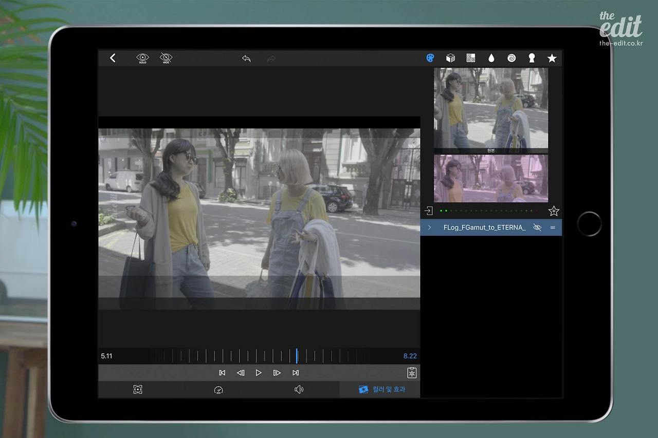 드롭박스에서 평소에 쓰는 LUT(look up table)를 가져와 적용해봤다. LUT는 외부에서 만든 전문적인 색감 컬러로, 쉽게 말해 보정 프리셋이다. 물론, 루마퓨전 내에서도 색감 조절이 가능하고 기본 제공되는 보정 프리셋이 있어 굳이 외부에서 가져올 필요는 없다. 그런데도 내가 굳이 디에디트에서 주로 쓰는 보정 LUT를 가져와 적용한 건 다른 영상들과의 색감 톤을 맞추고 싶었기 때문이다.