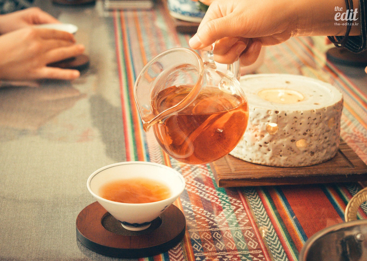보이차를 처음 마셨을 때 몸의 온도가 올라가면서 땀이 많이 났다. 그래서 몸이 찬 사람이 마시면 좋다고 한다. 땀을 흘리고 나니 몸이 굉장히 가볍고 개운했다. 이효리가 마시는 차의 종류(비싸다고 한다)도 마셨는데, 혀끝이 둔한 편인 나는 그 맛의 차이를 알지 못했다. 하지만 이날 마신 4개의 모든 보이차가 다르다는 건 알 수 있었다. 보이차의 세계를 아주 살짝 맛본 것 같았다. 보이차 수업이 끝나니 선생님은 “오늘 저녁에 다들 바쁘세요?”하고 물었다. 친절한 호스트는 시간이 괜찮다면 저녁 식사를 하고 가는 건 어떠냐고 물었다. 해가 진 7시 반, 한 명도 빠지지 않고 모두 좋다고 했다.
